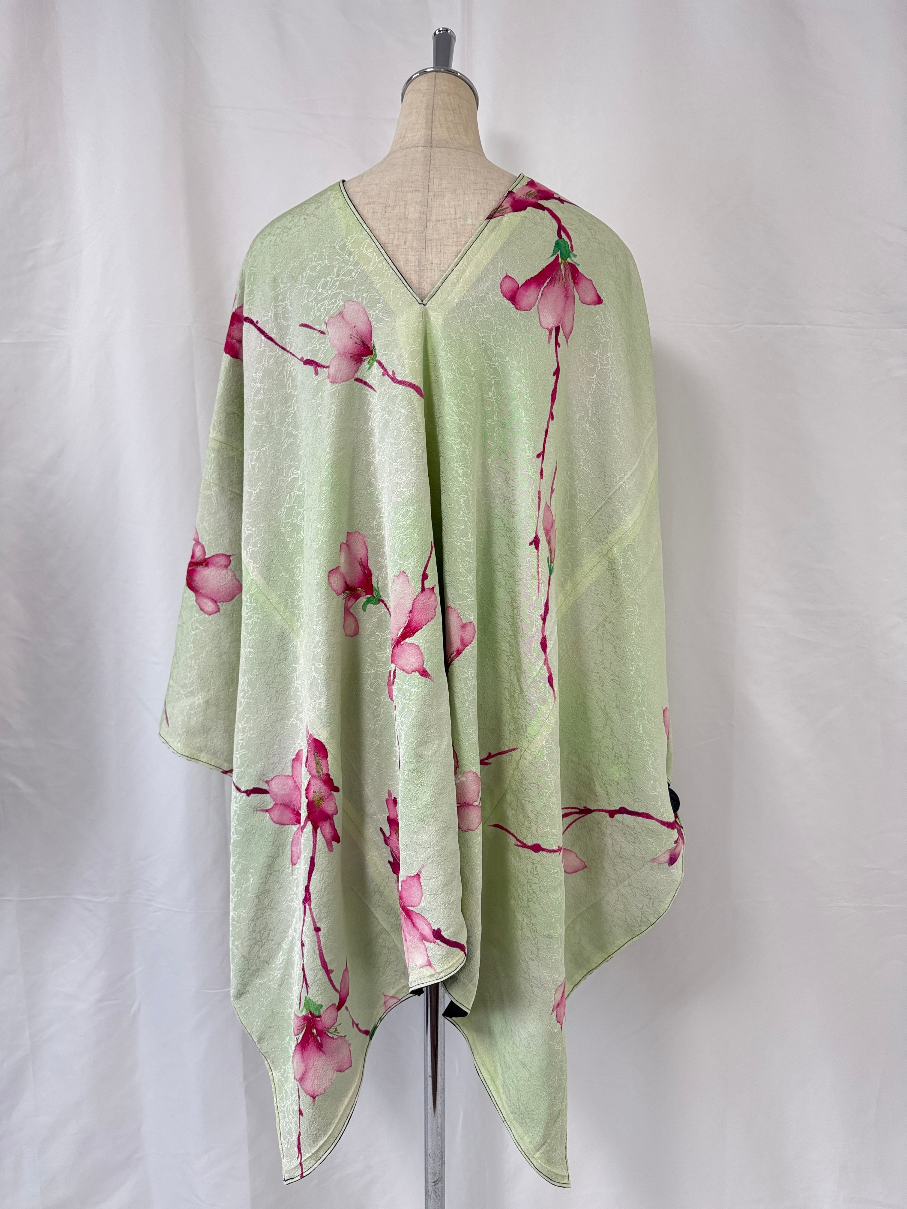 This poncho is an upcycled version of a traditional vintage kimono.