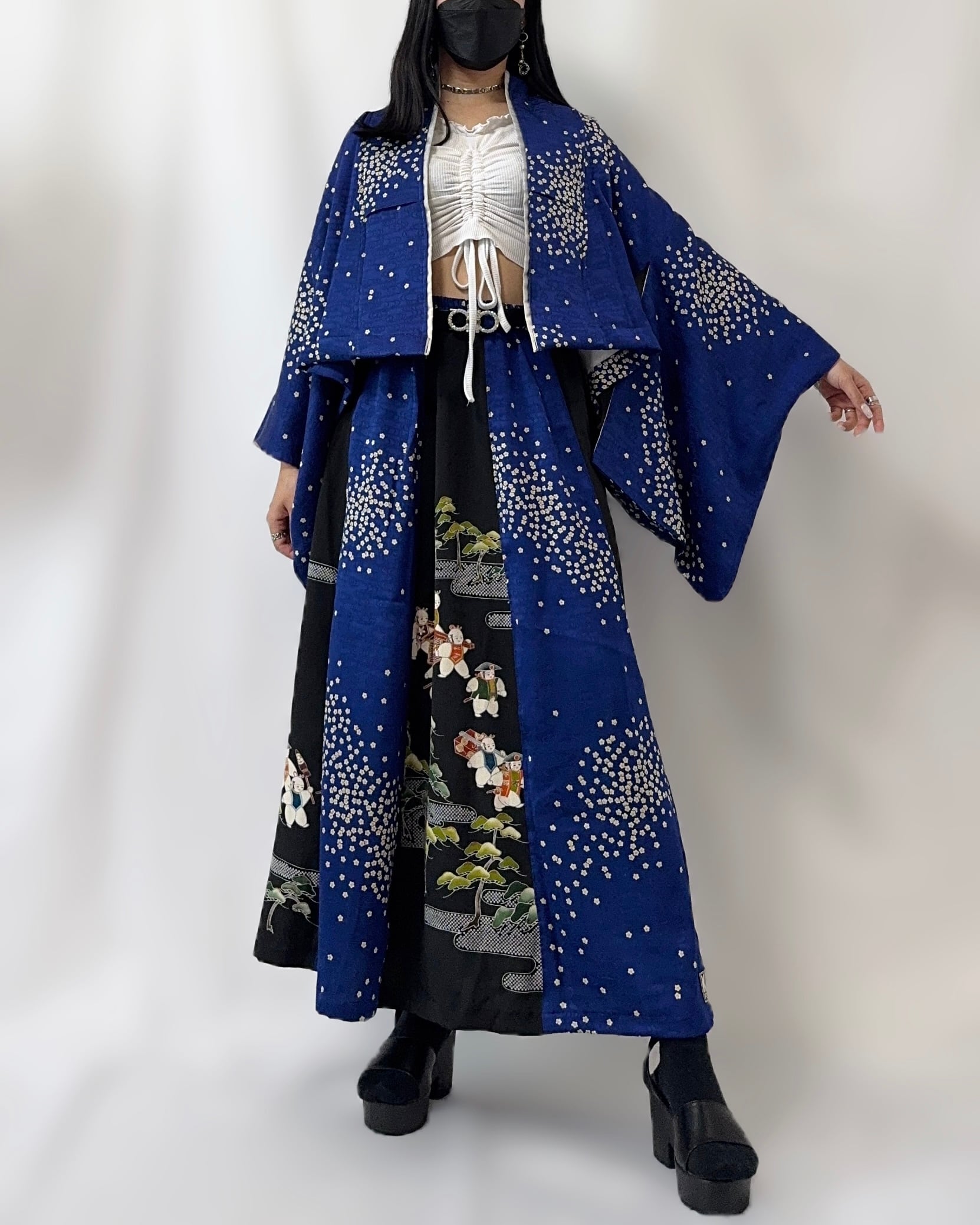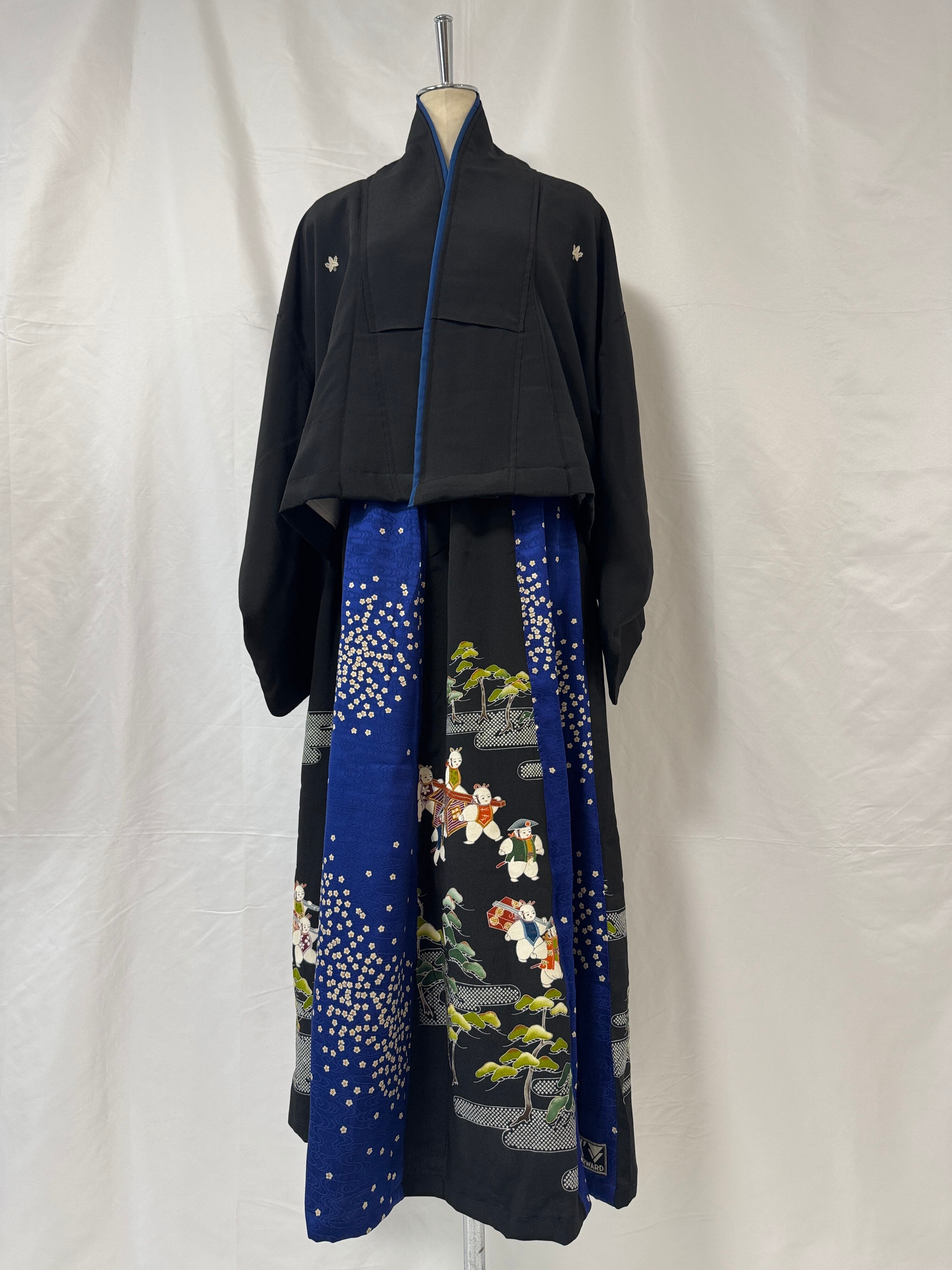 Vintage kimono (visiting kimono) upcycled into a two-piece set.