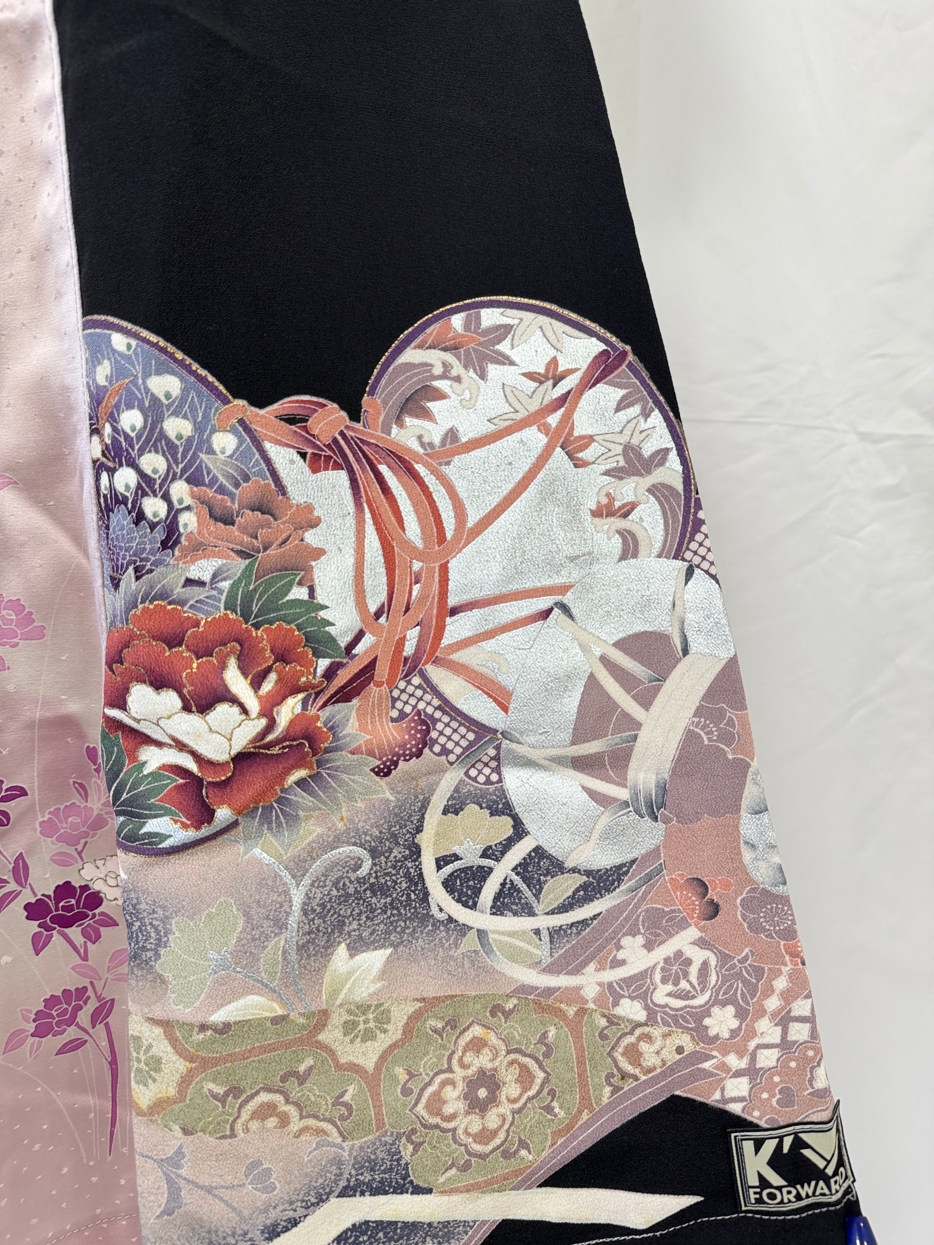 スカートには、2着の着物(訪問着と留袖)の裾柄を交互に配置。