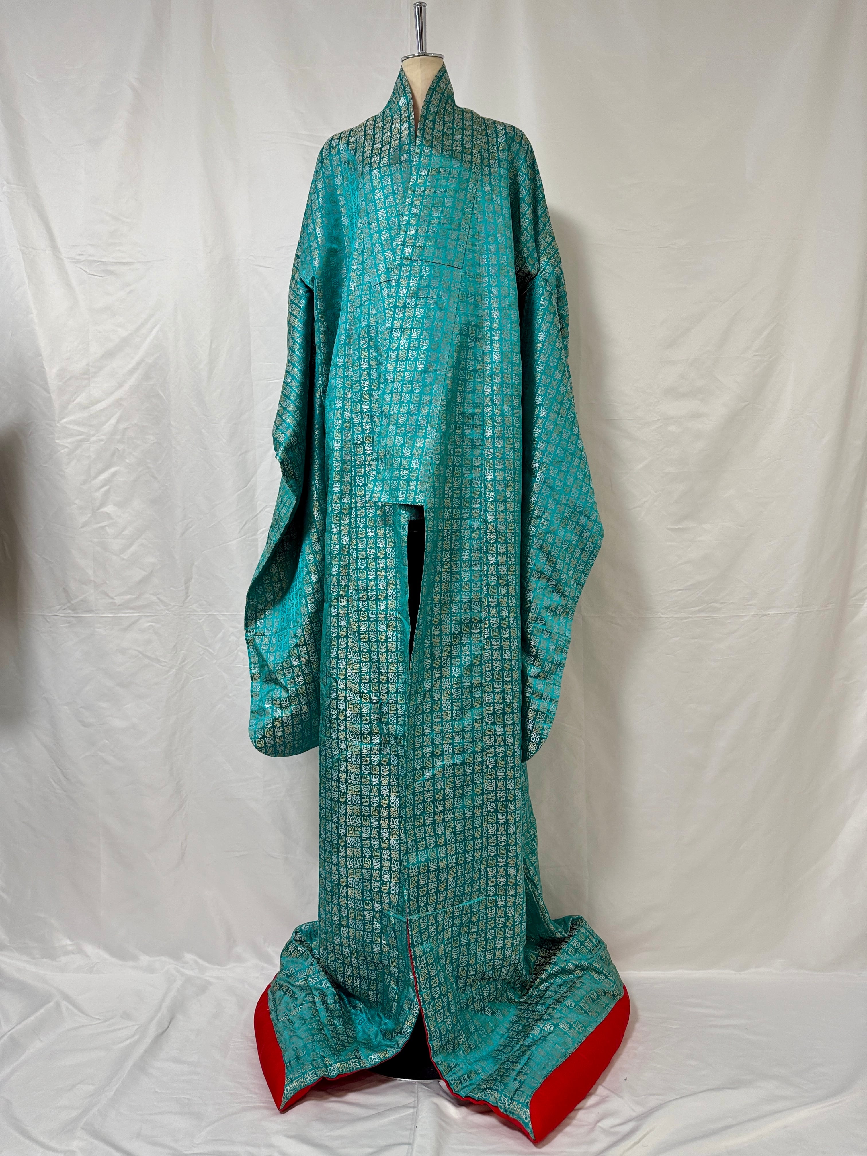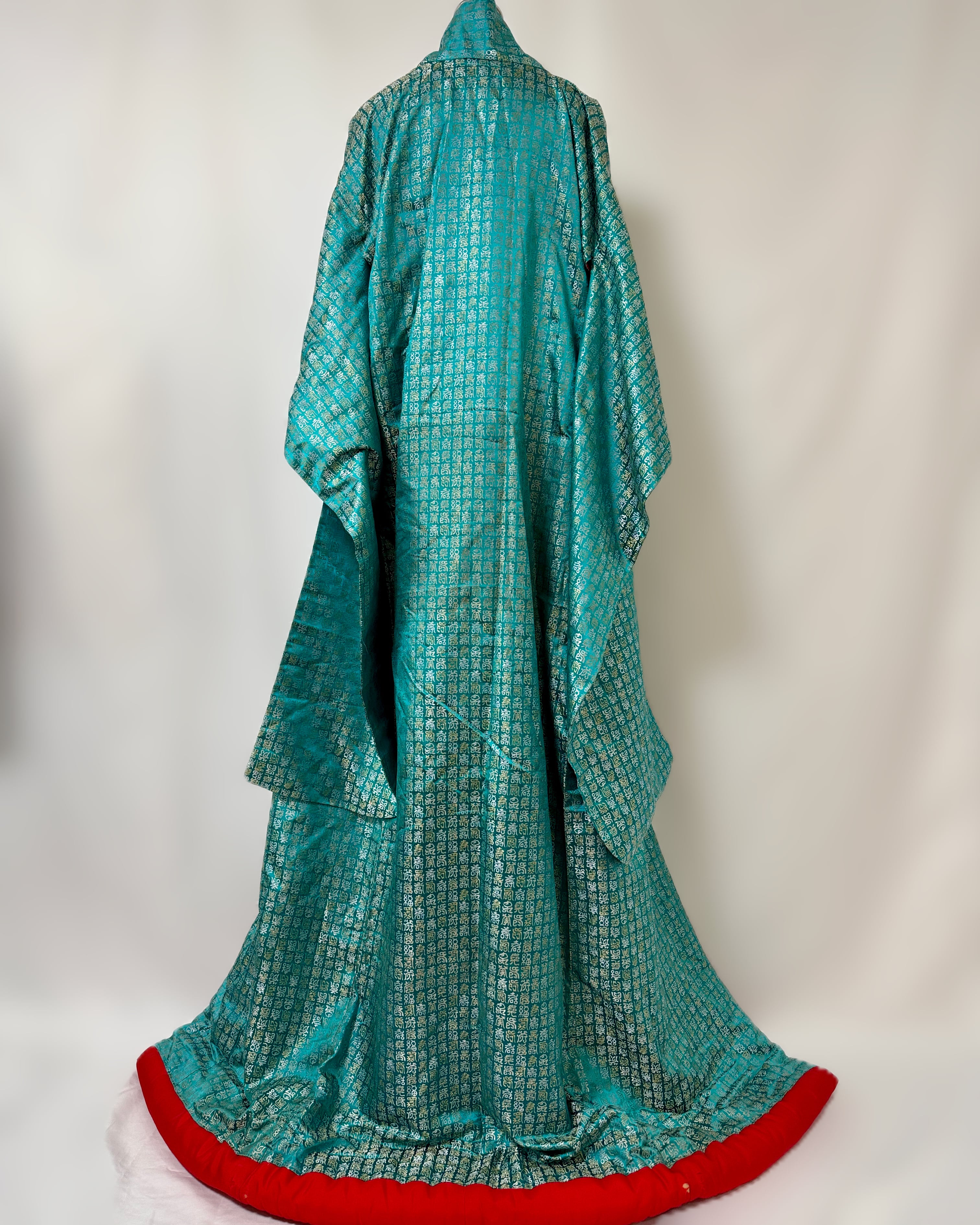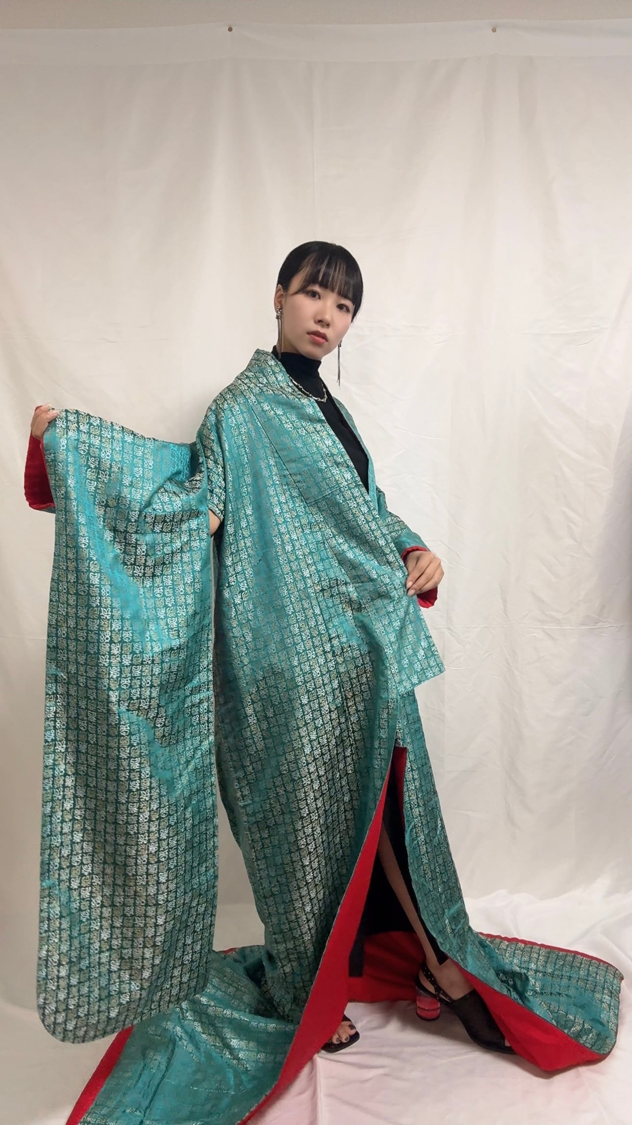 布地が厚く重いのが特徴で、裾を引きずるスタイルが格式高い印象を与えます。