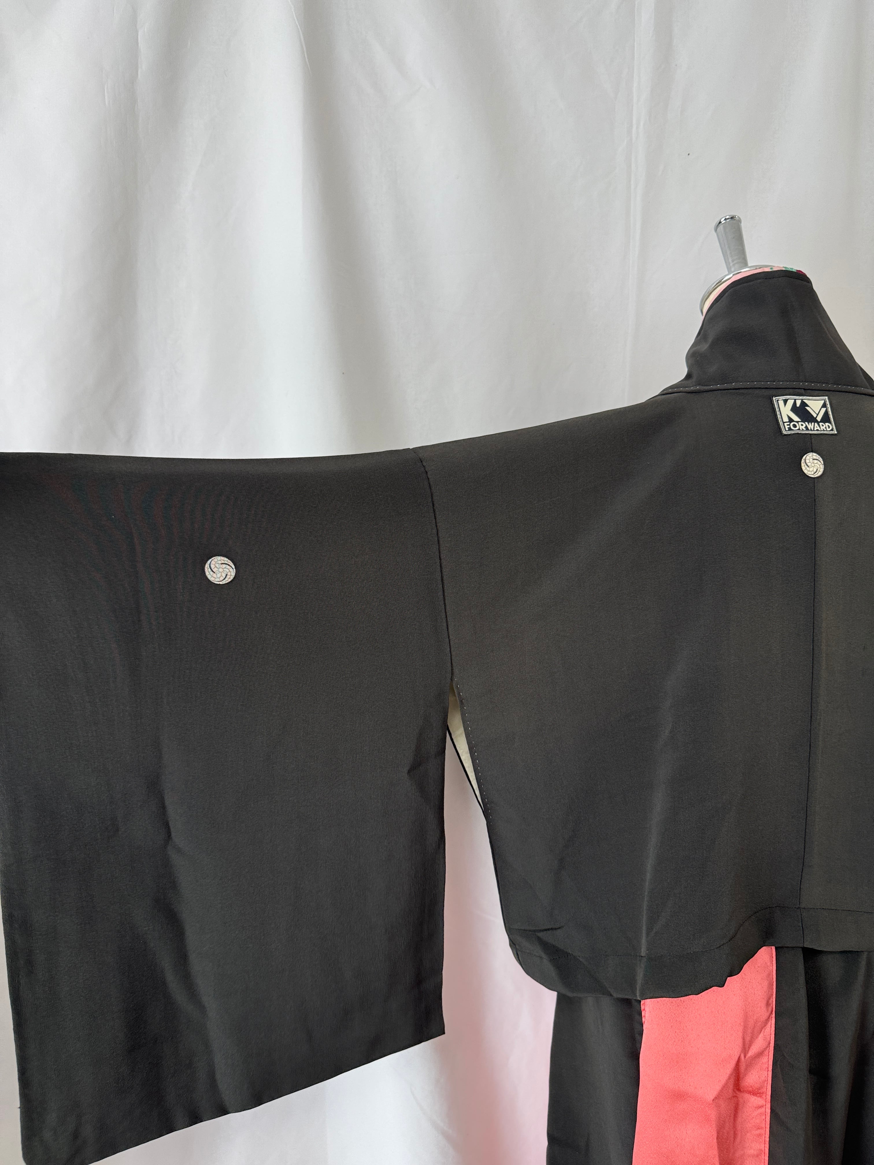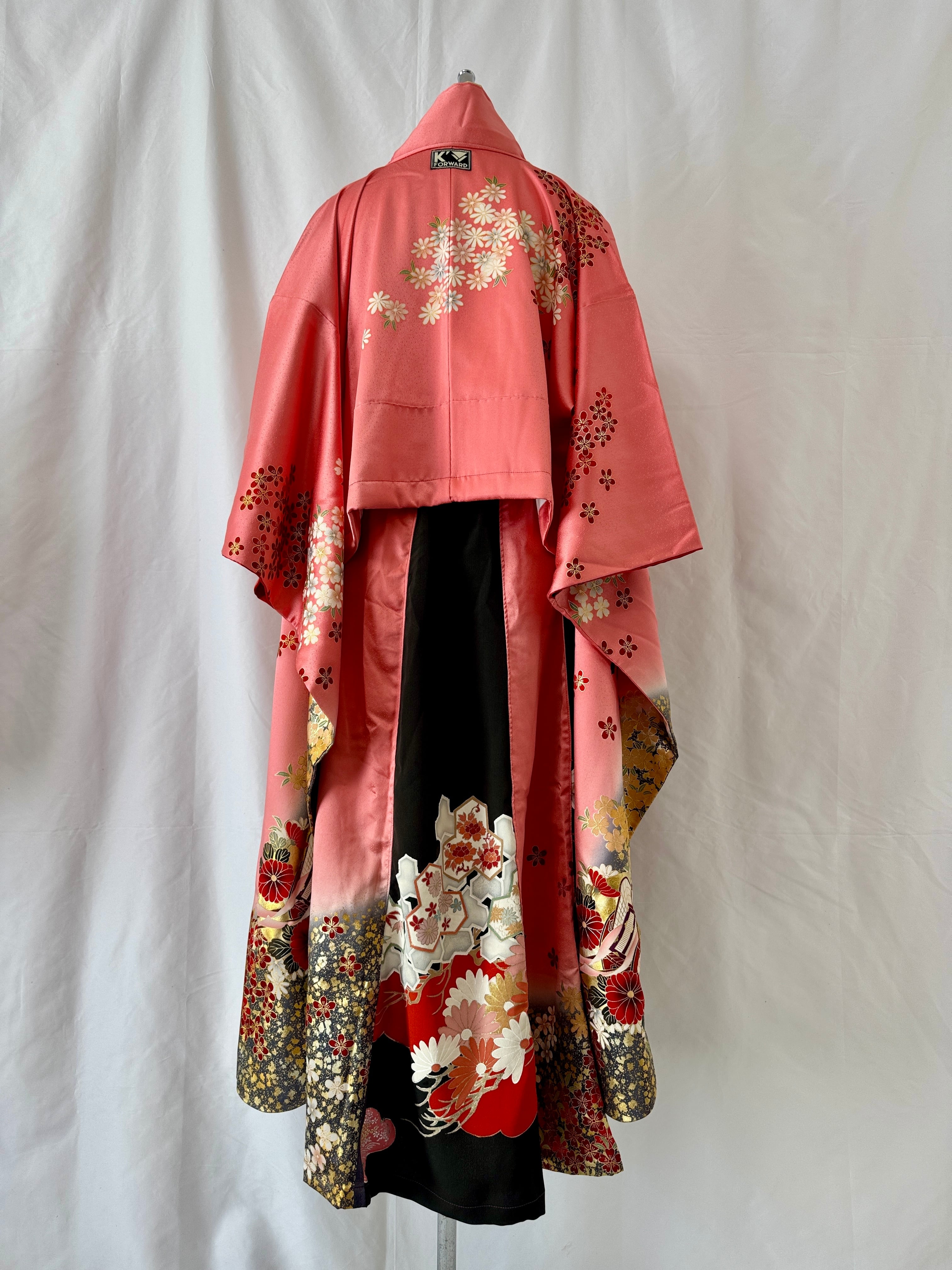 Additionally, the jacket lining incorporates a kimono obi sash that complements the furisode,creating a striking, statement-making finish.