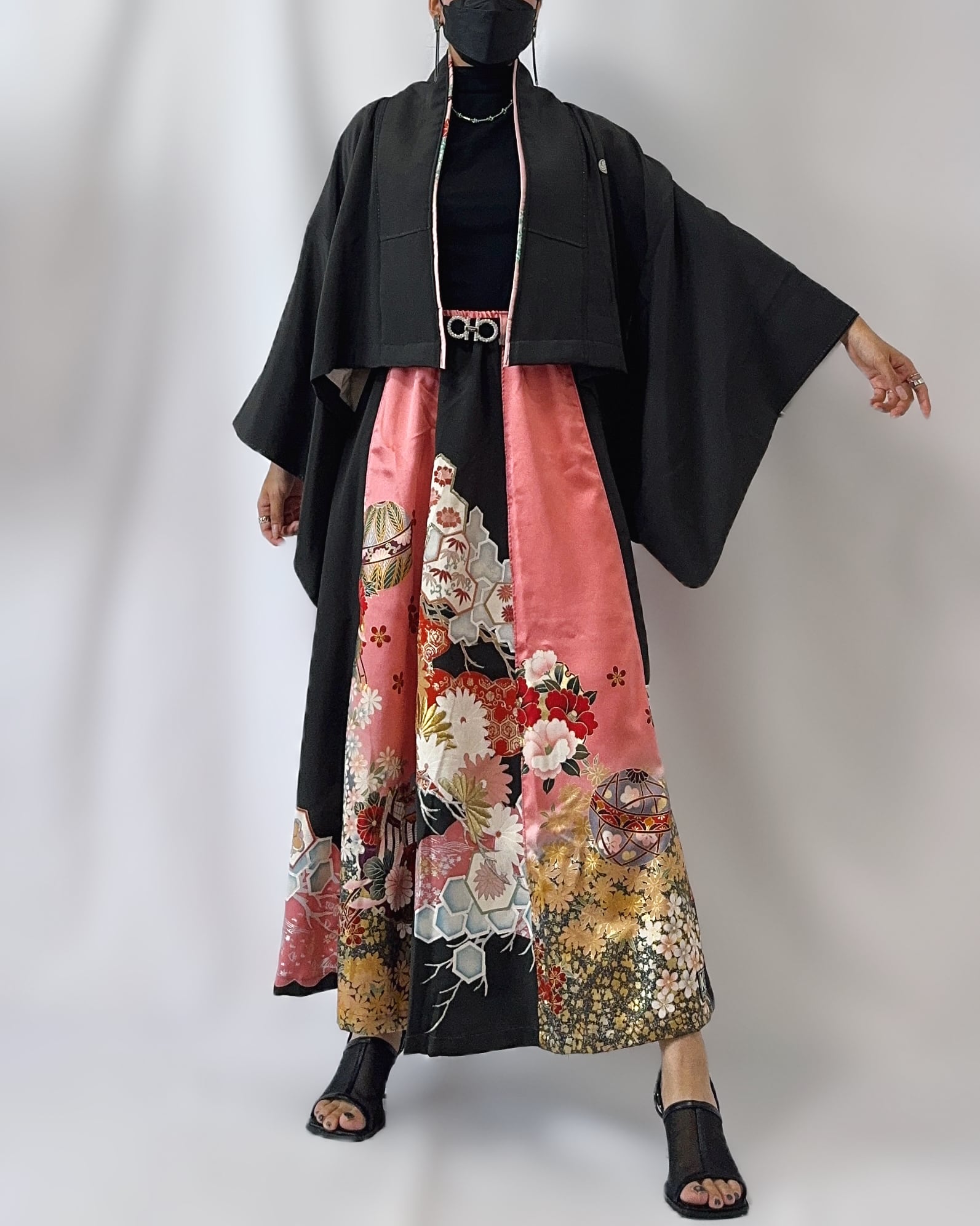 日本の伝統的衣装である『振袖』と『留袖』をリメイクしたセットアップ。