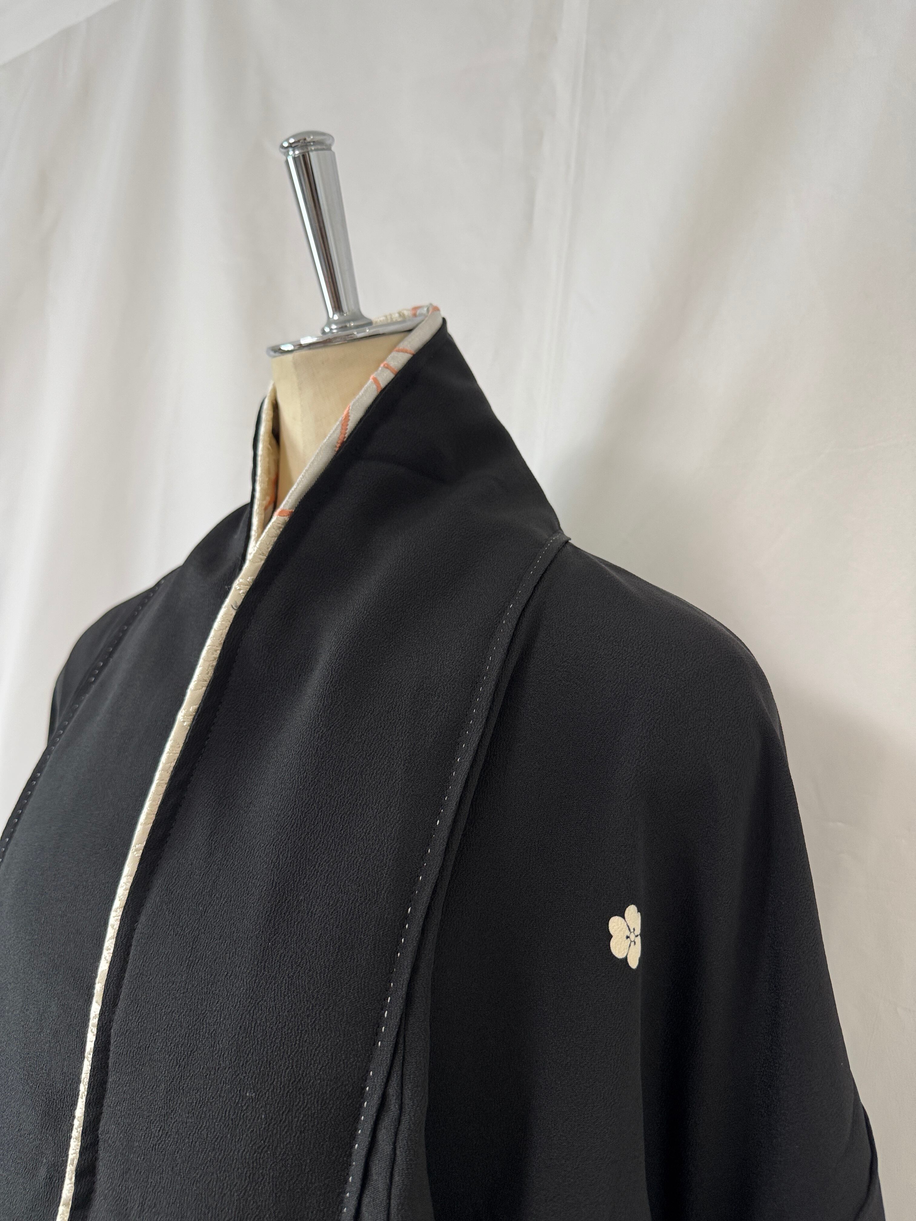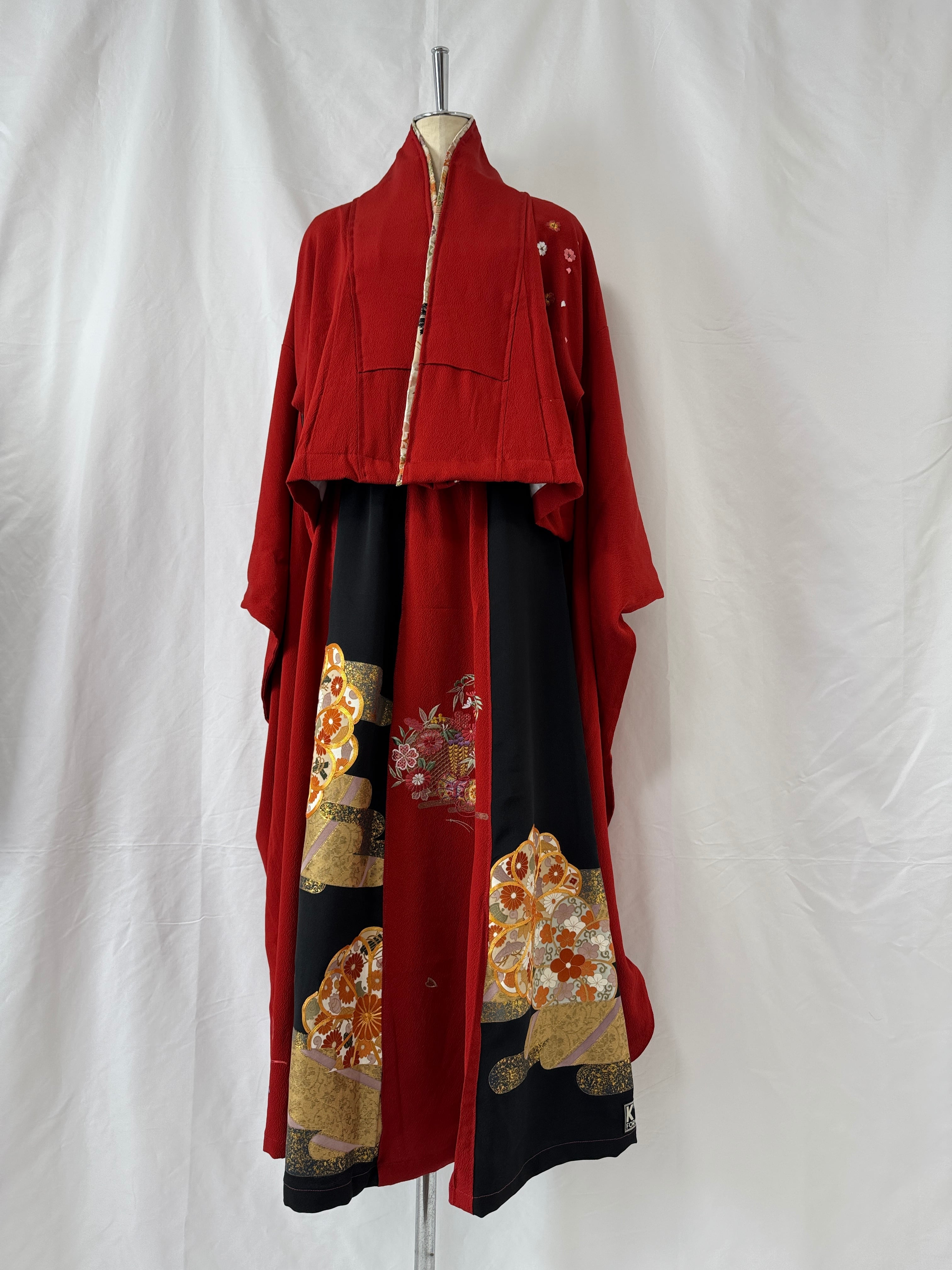 A two-piece set upcycled from traditional Japanese garments: the ‘furisode’ and ‘tomesode’.
