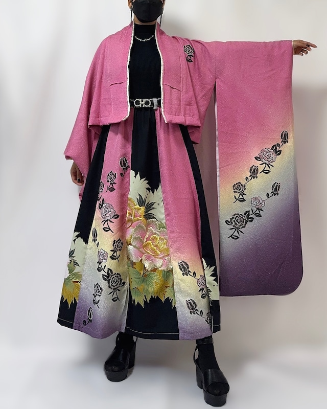 日本の伝統的衣装である『振袖』と『留袖』をリメイクしたセットアップ。