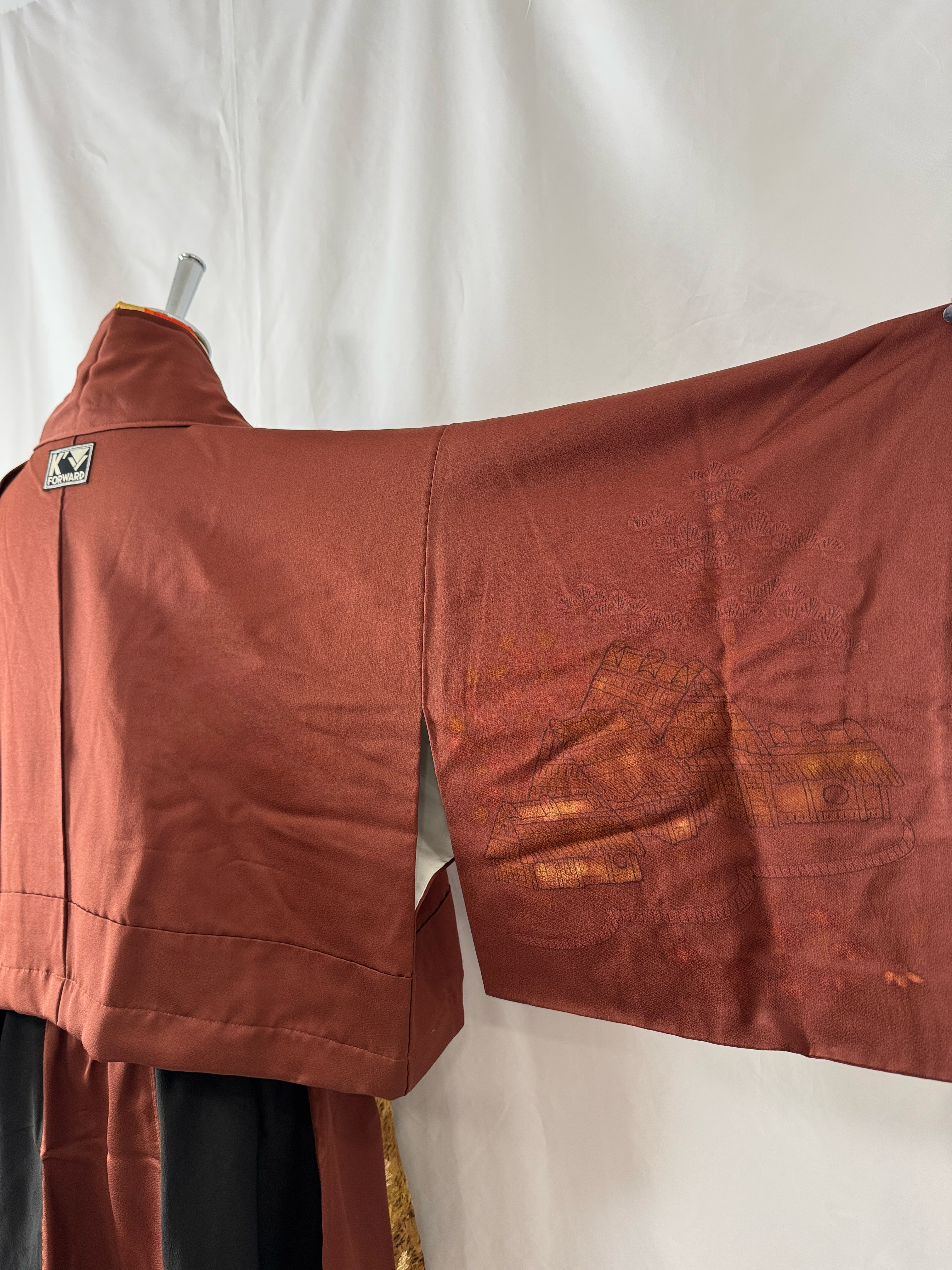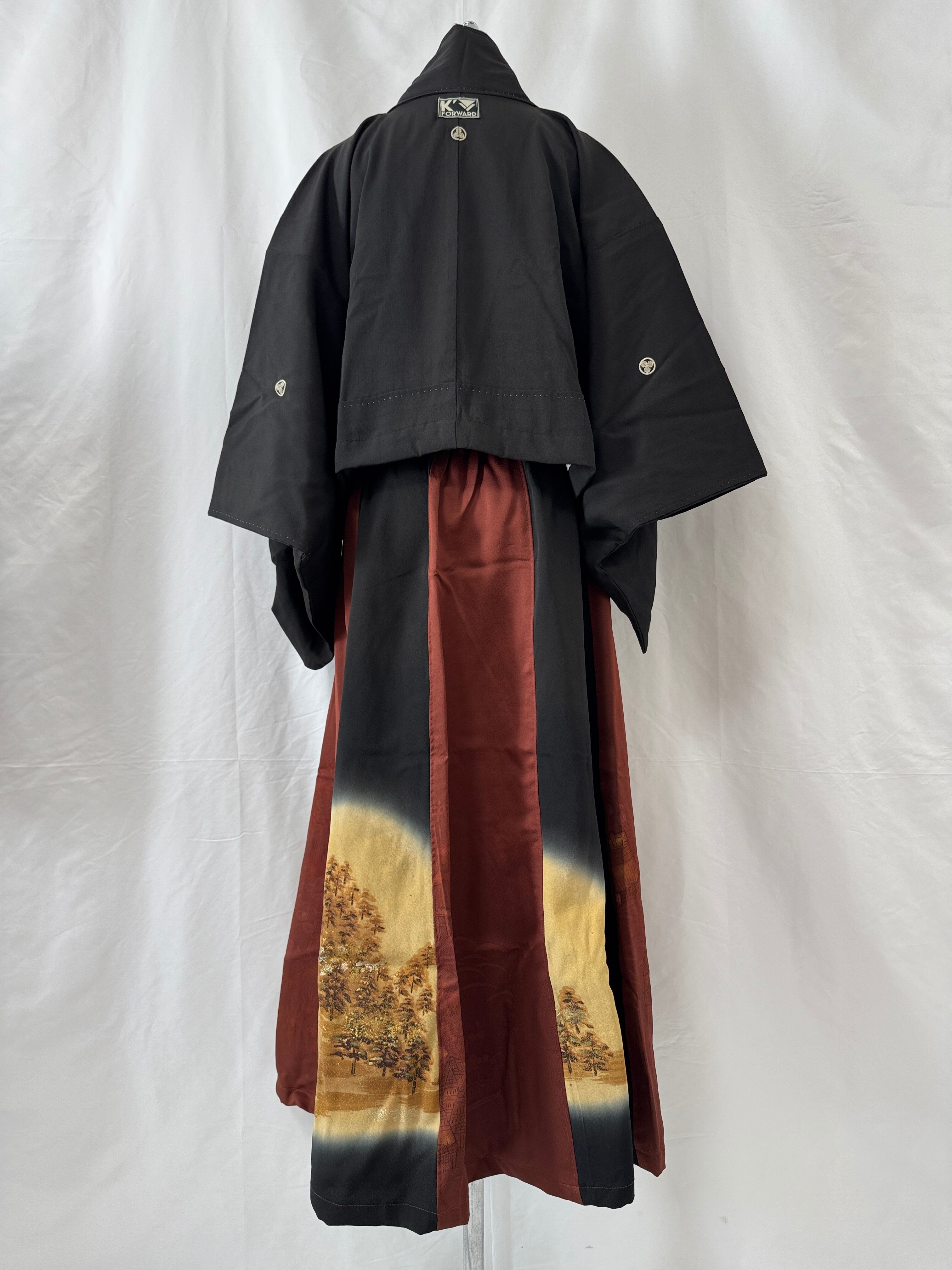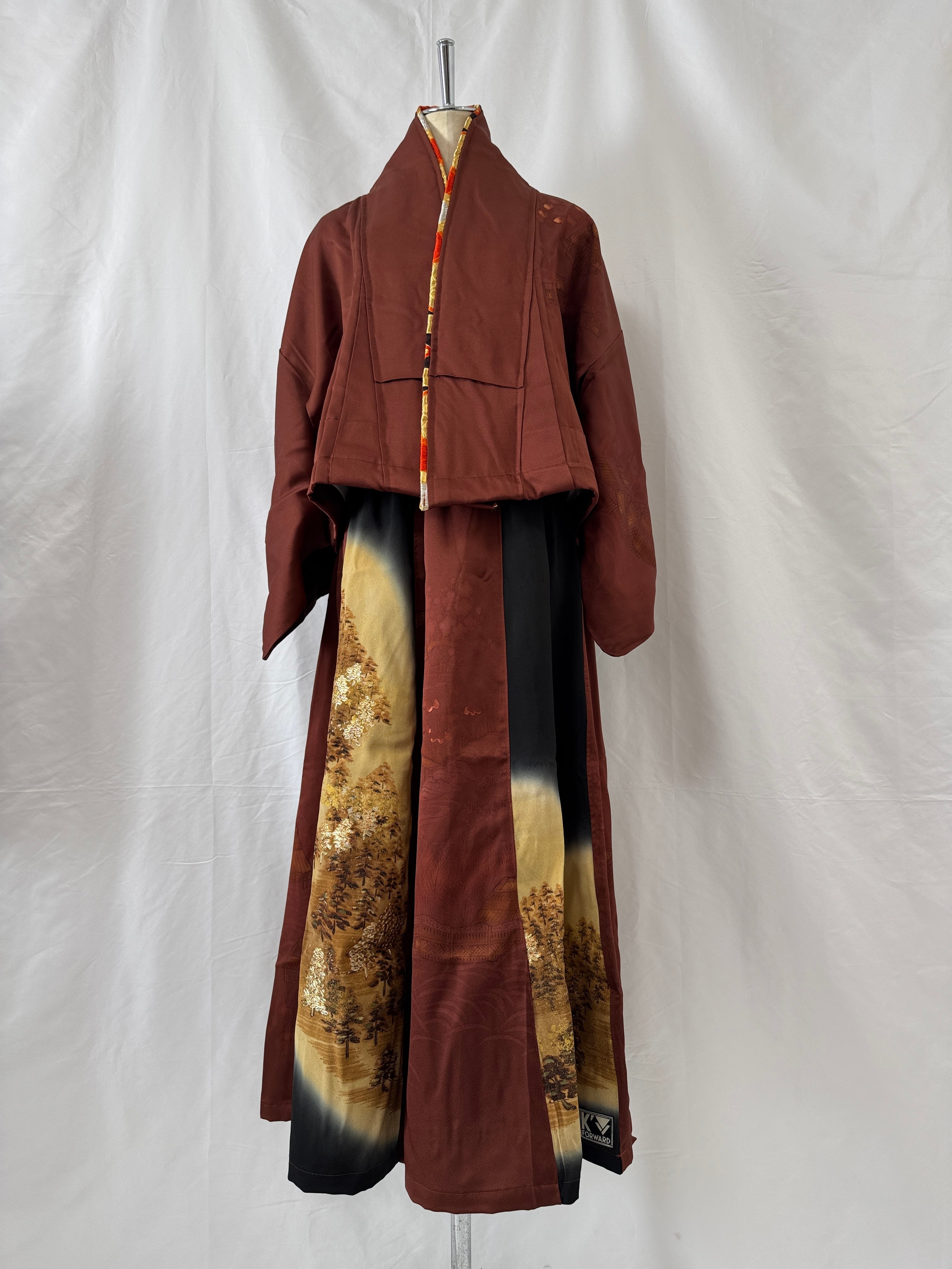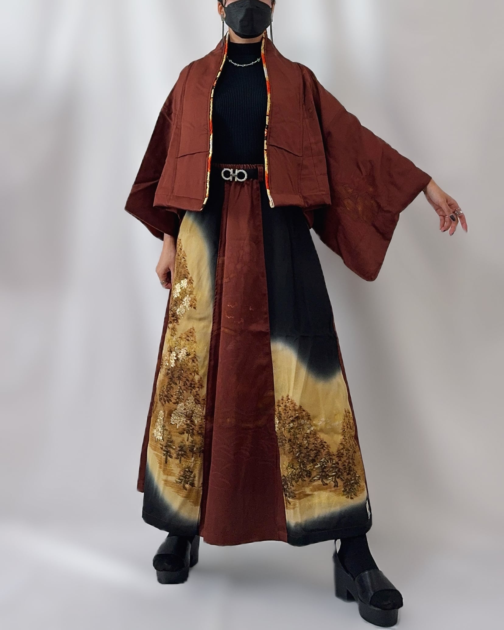 A one-of-a-kind two-piece set by K'FORWARD, crafted from vintage houmongi and tomesode.