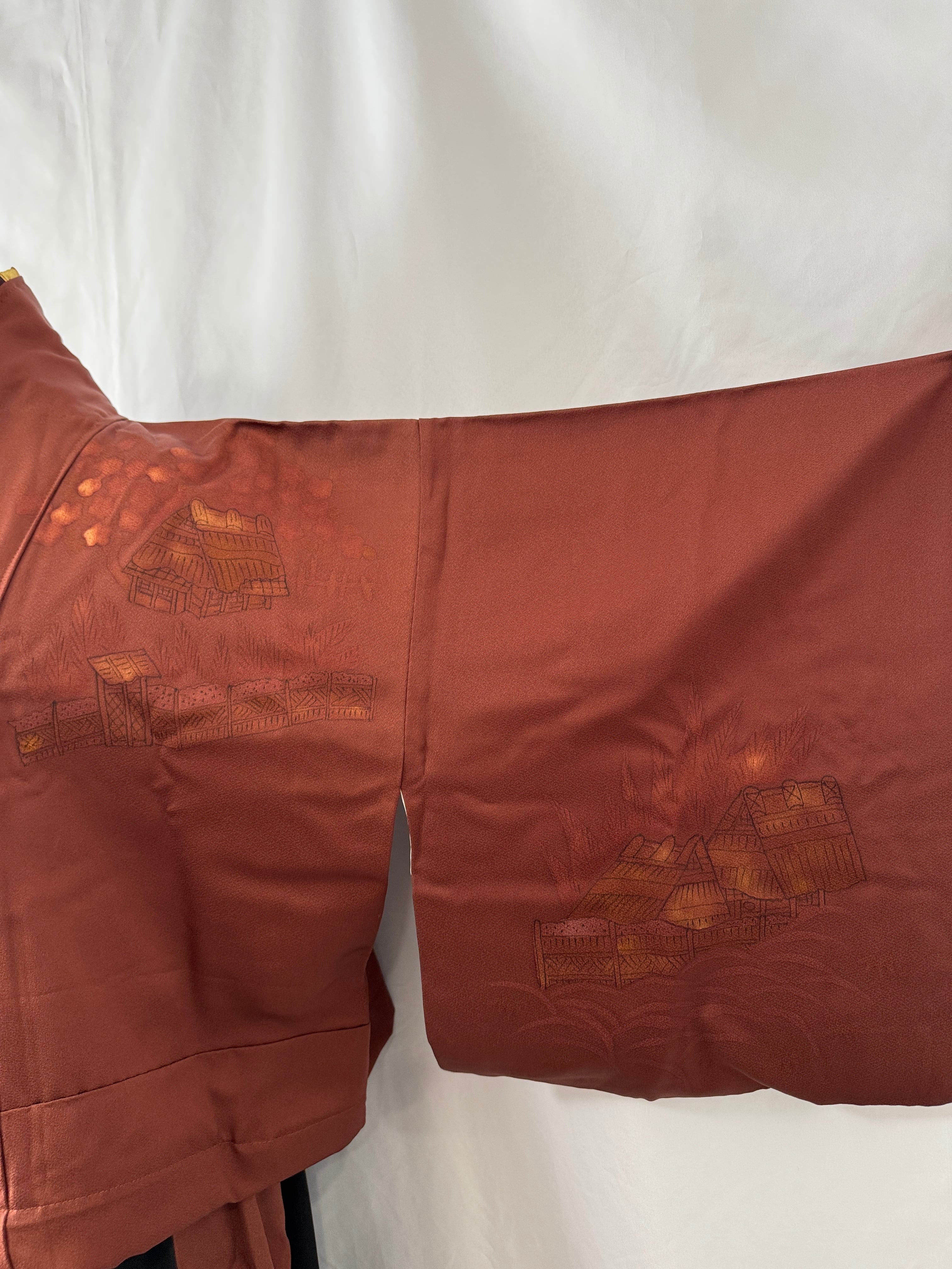 while the gold-painted landscape spreading across the hem creates a beautiful piece.