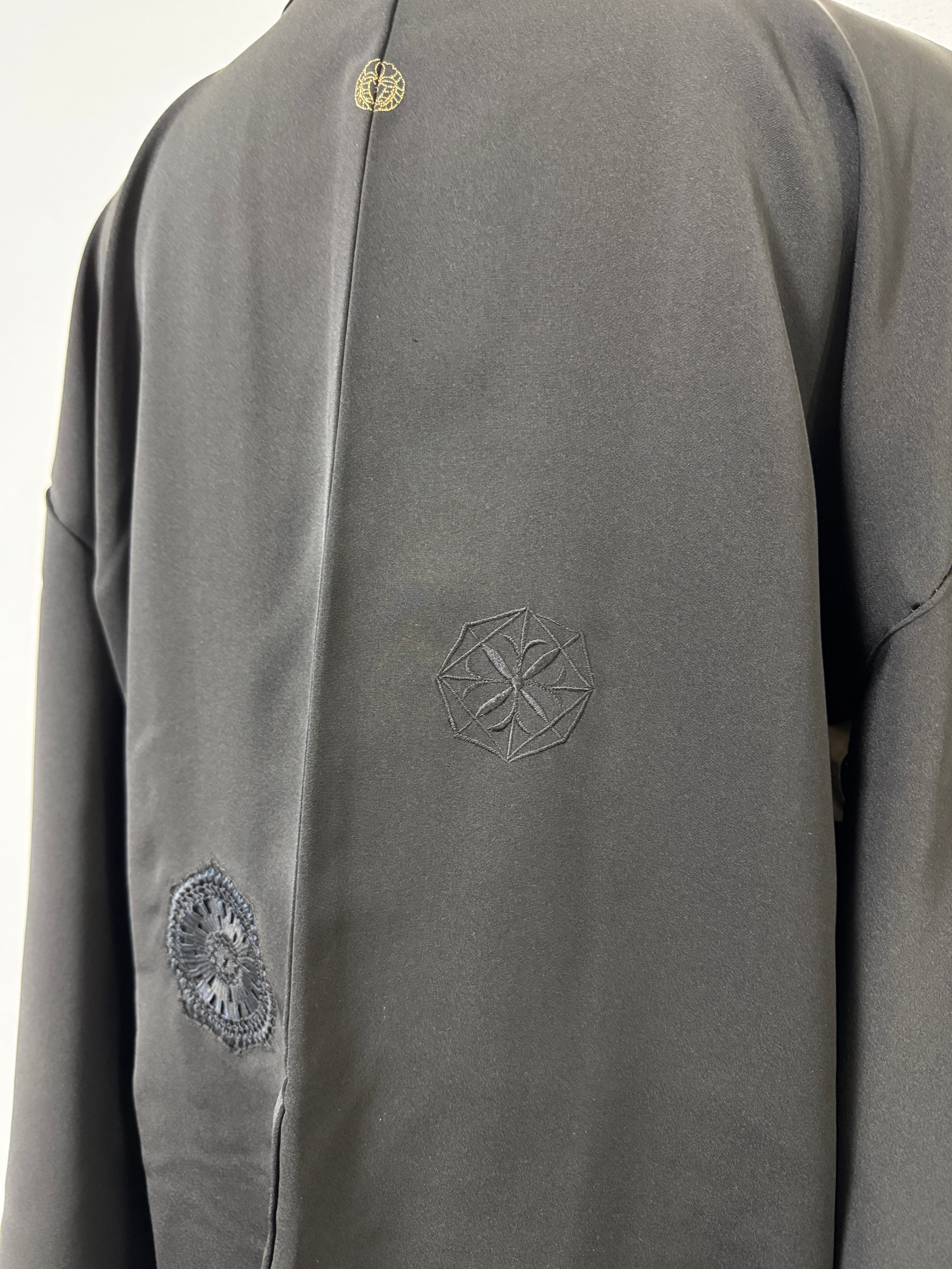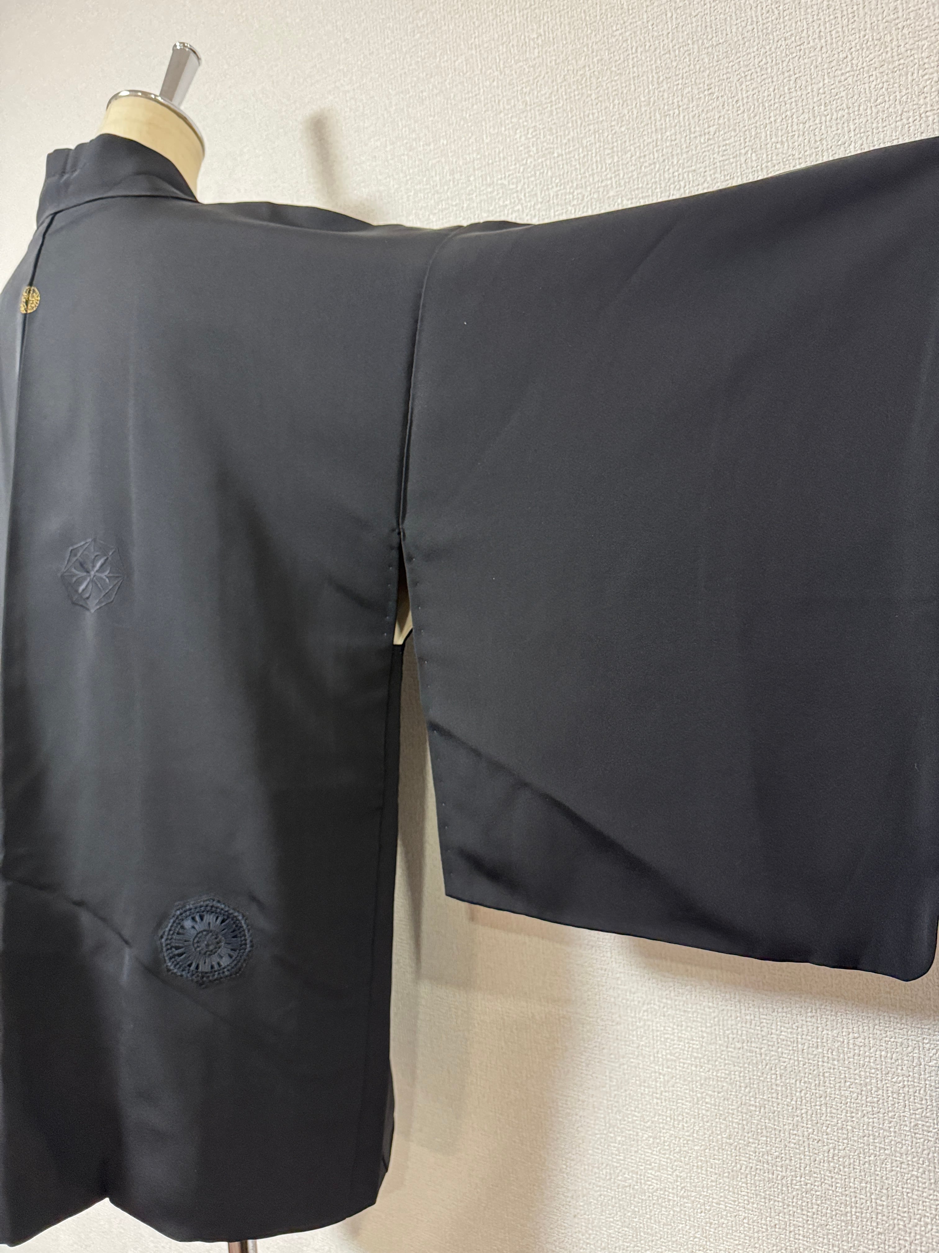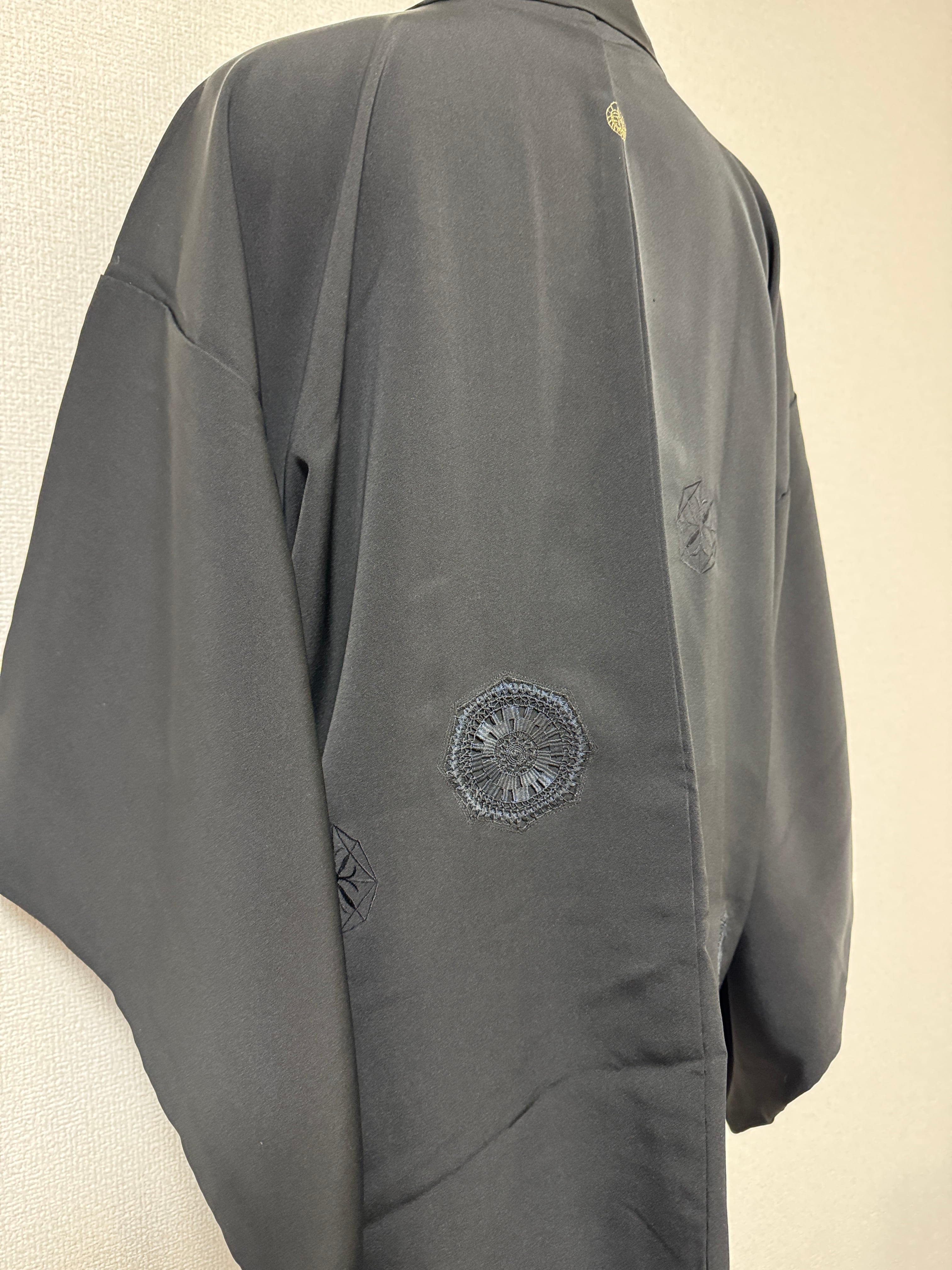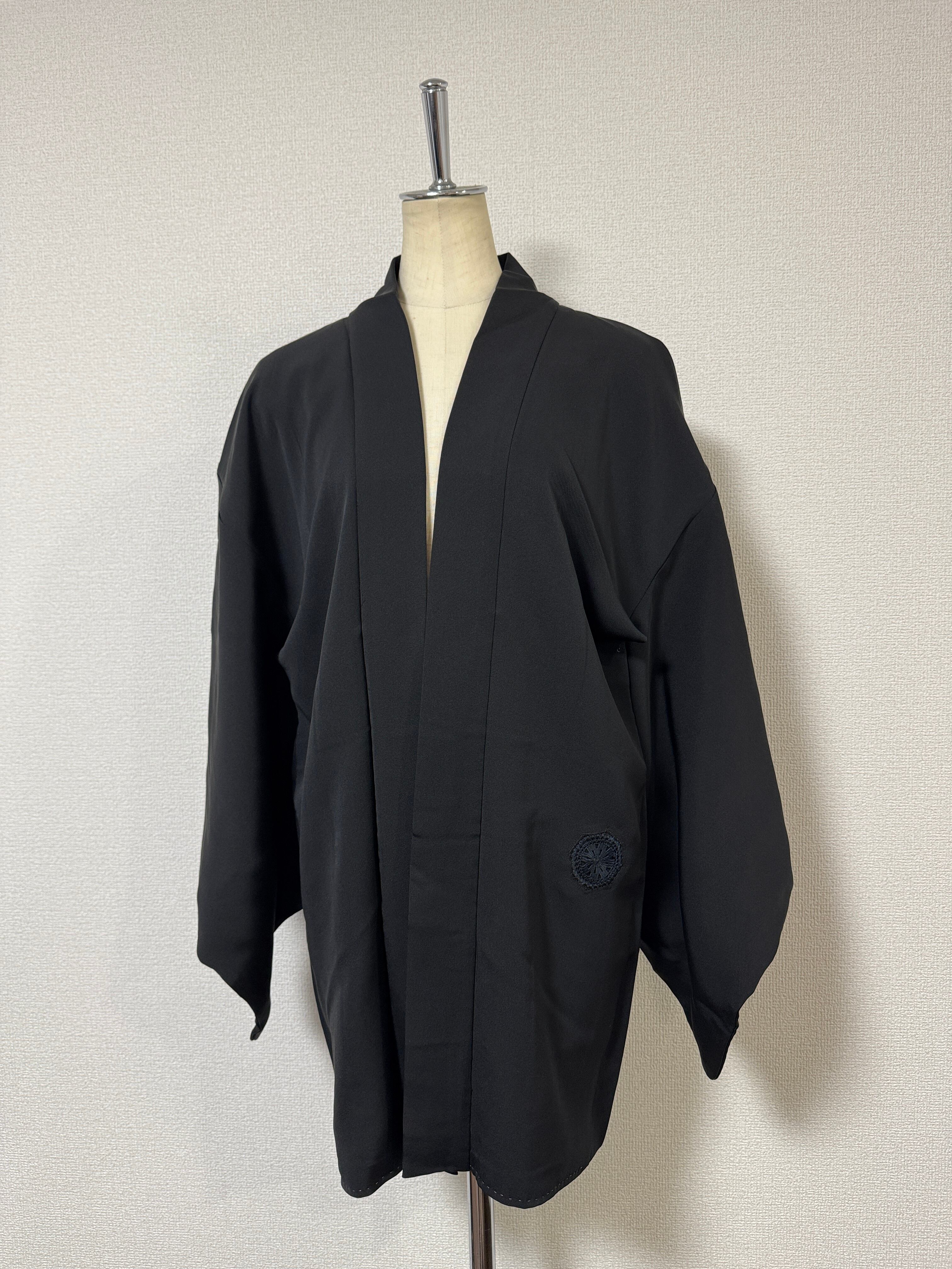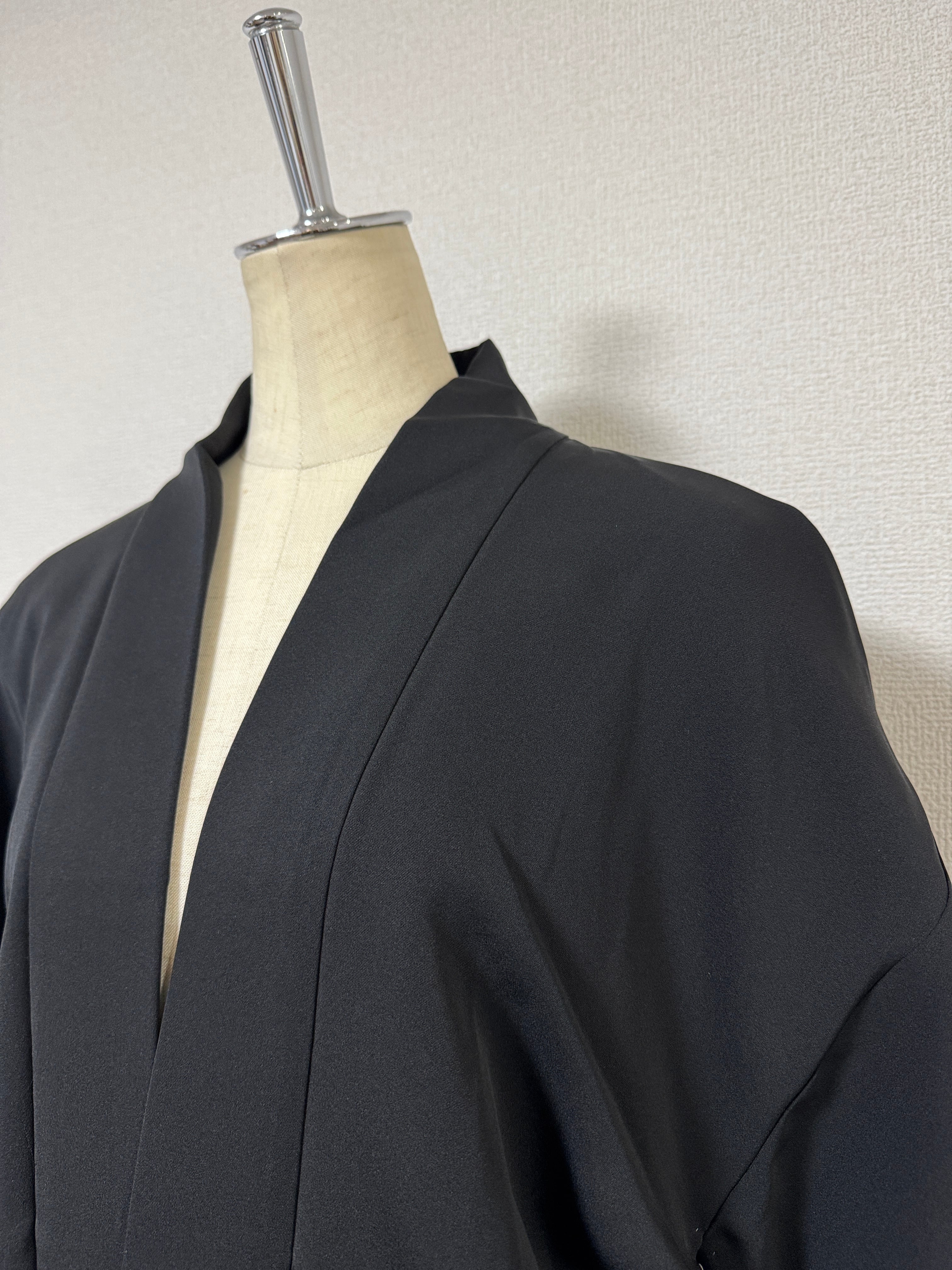 The kimono's unique design and deep black color make it a special piece of clothing.