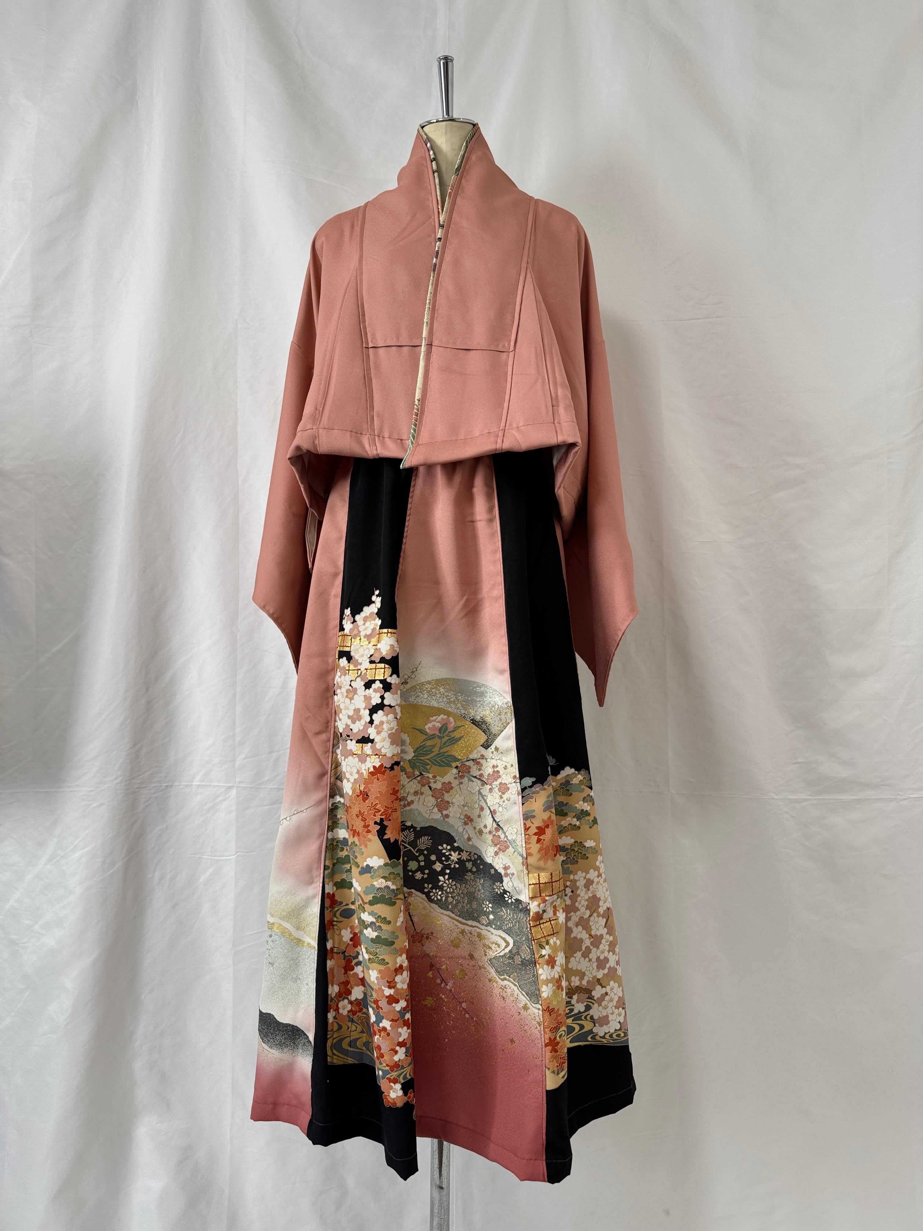 ヴィンテージの訪問着と留袖を用いて仕立てた、K´FORWARDの一点物セットアップ。