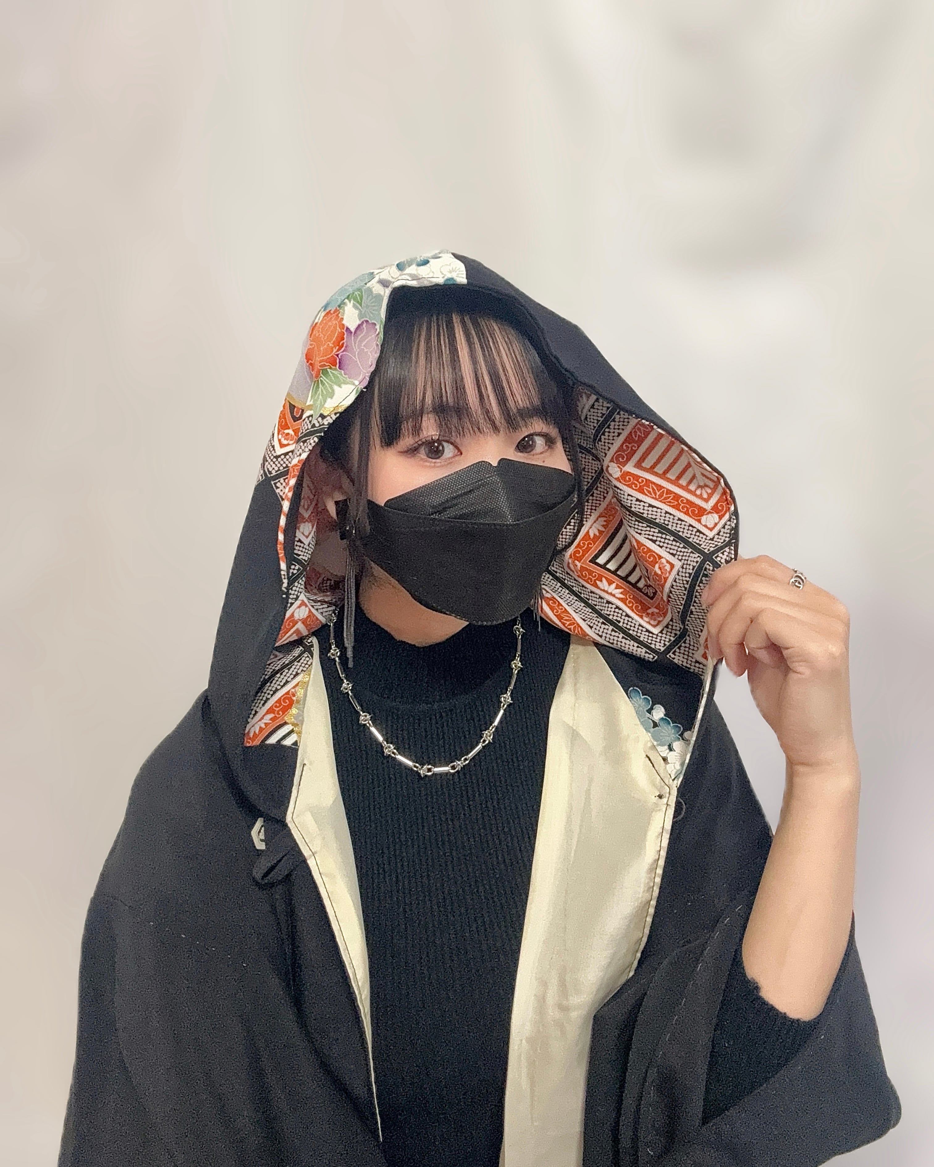 格式ある黒留袖を、現代の感性でリメイクしたフード付きコート。