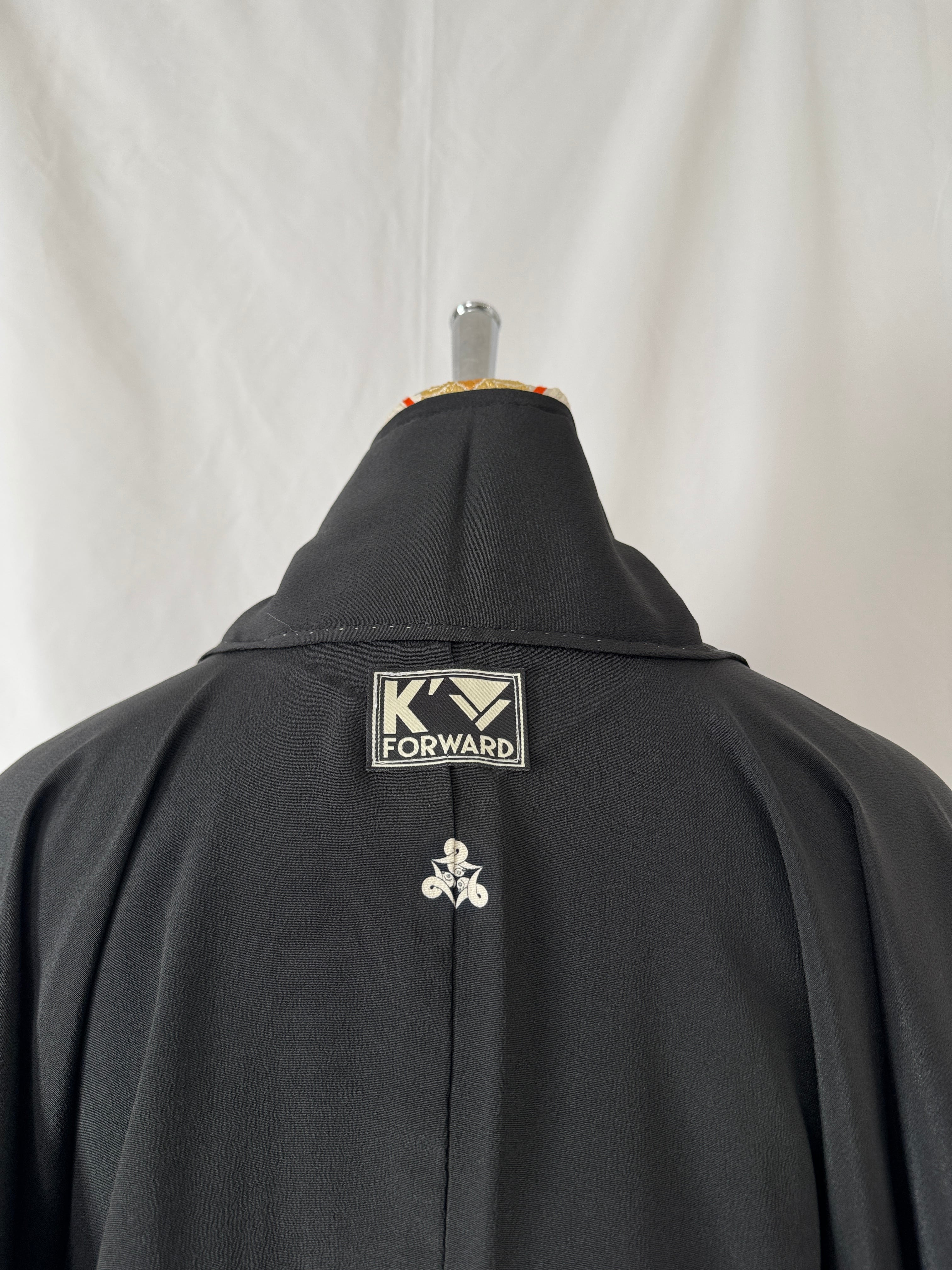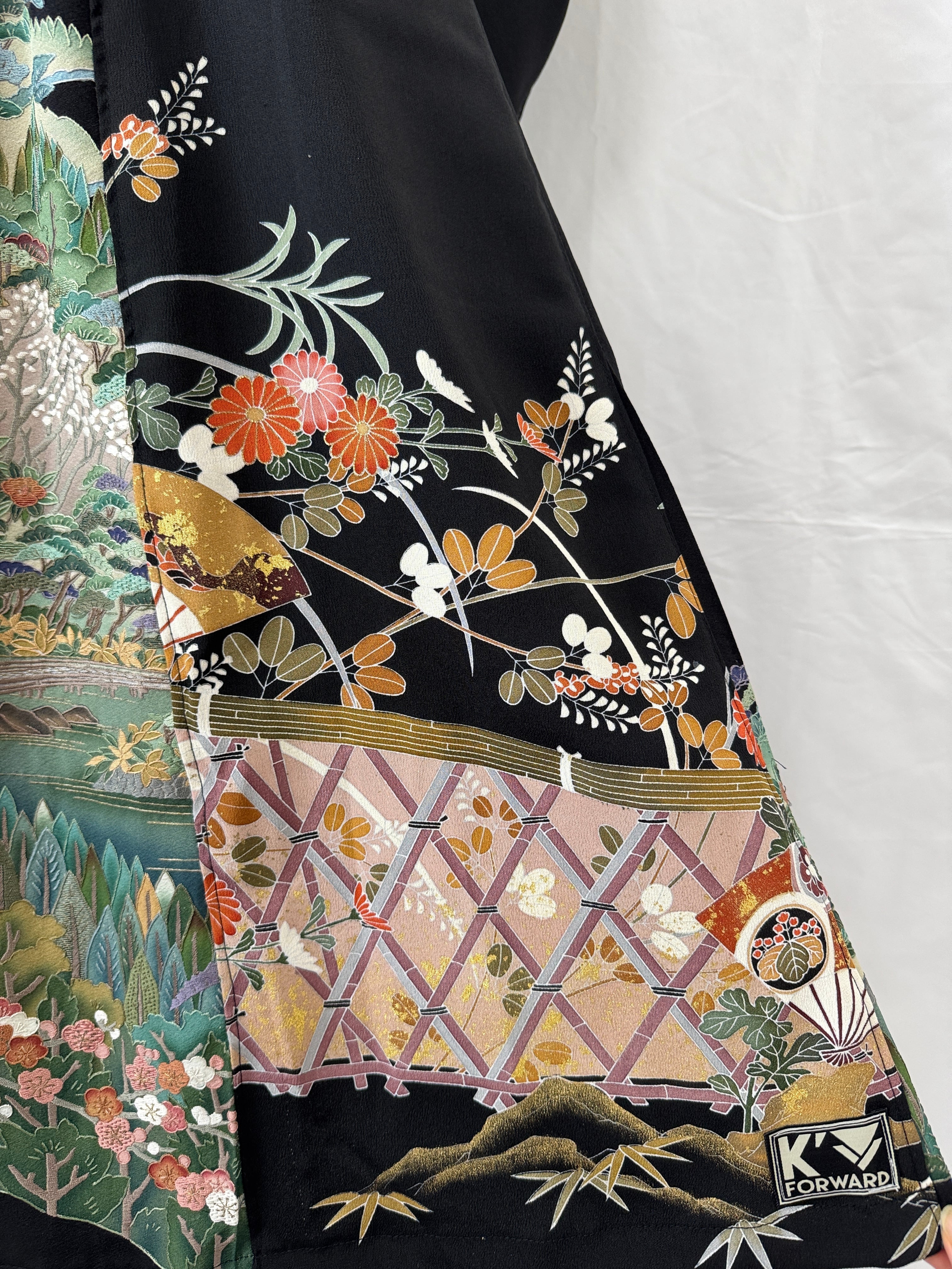 スカートは、2着の黒留袖を贅沢に組み合わせて制作。