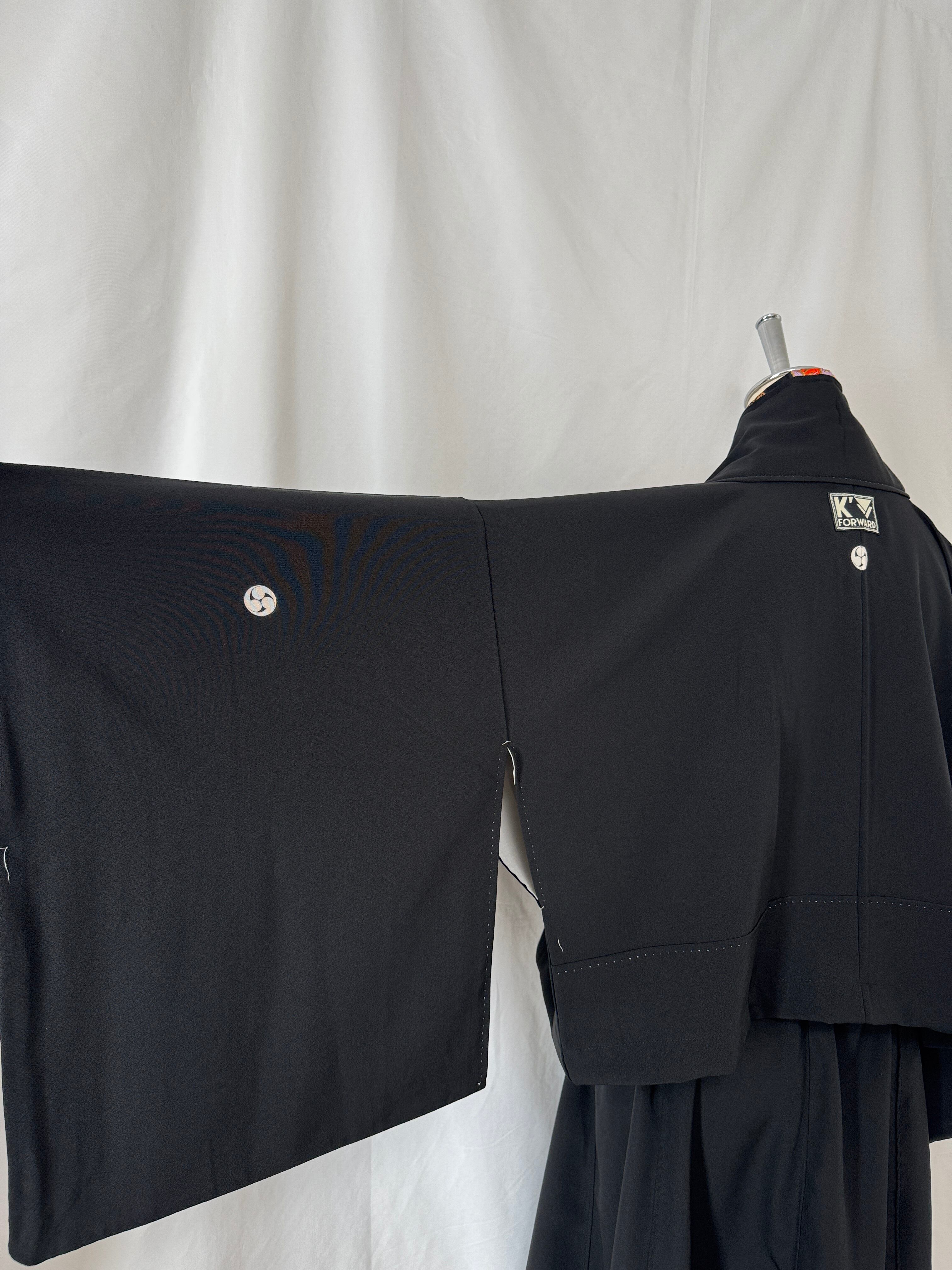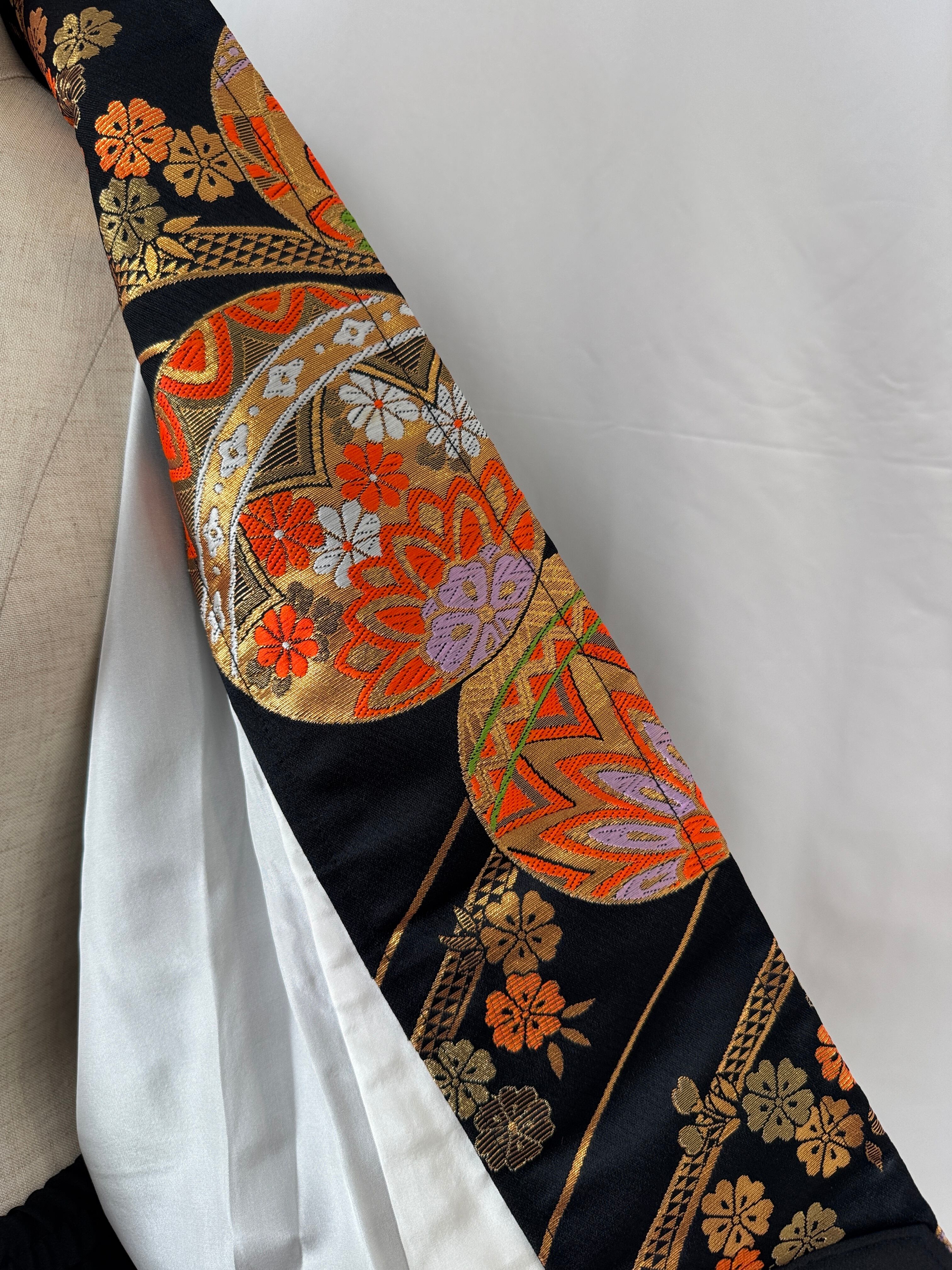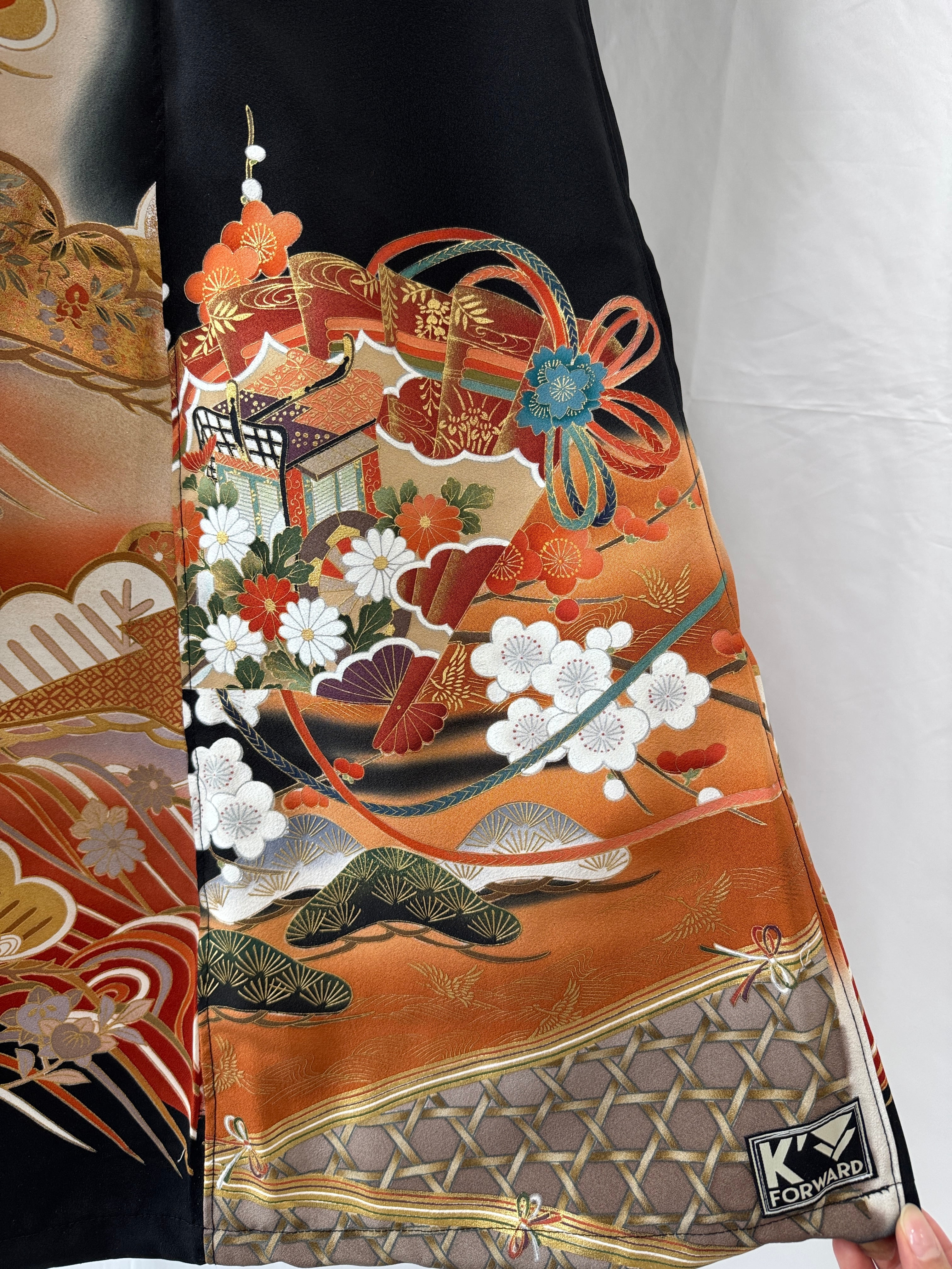 スカートは、2着の黒留袖を贅沢に組み合わせて制作。