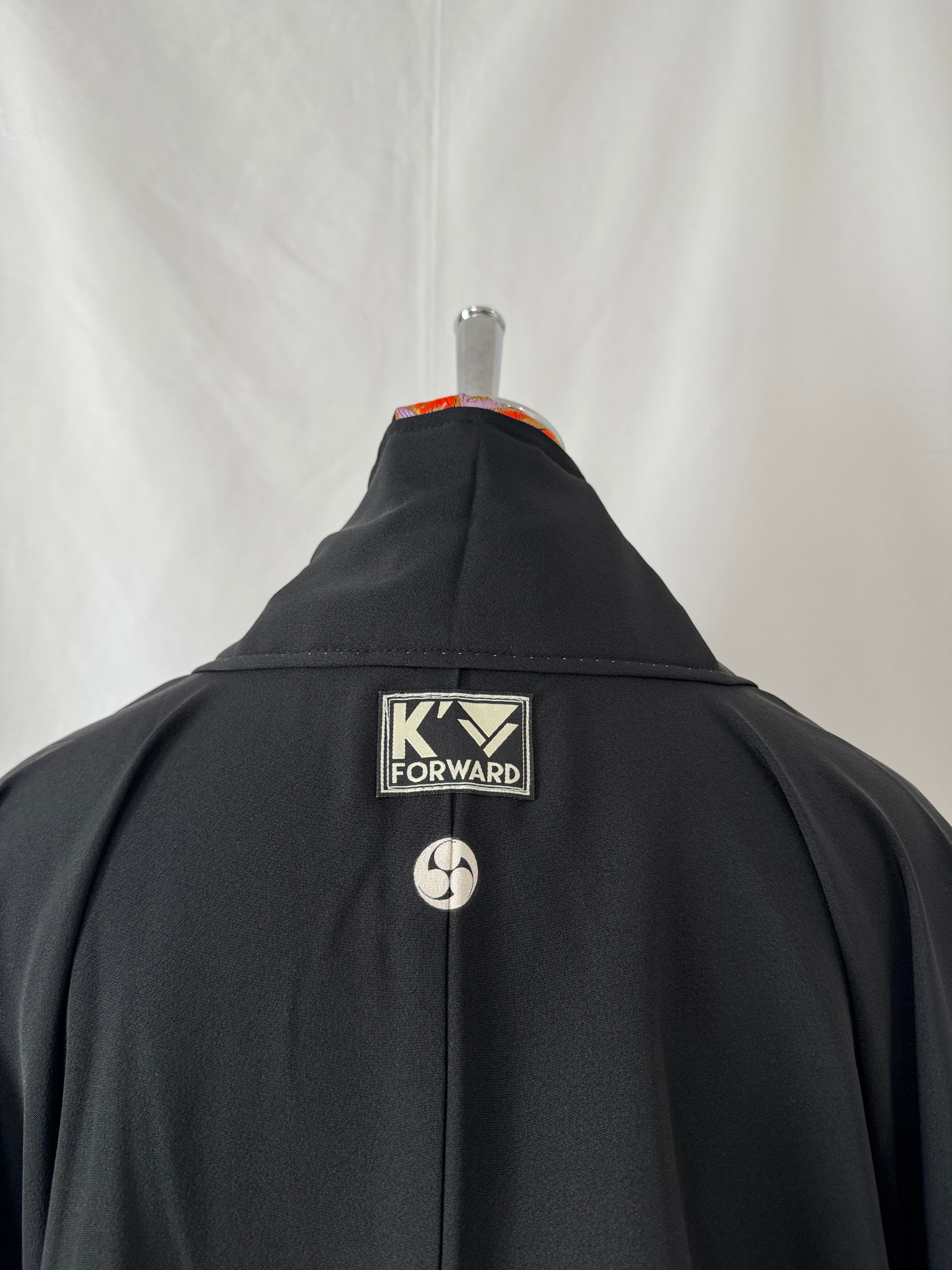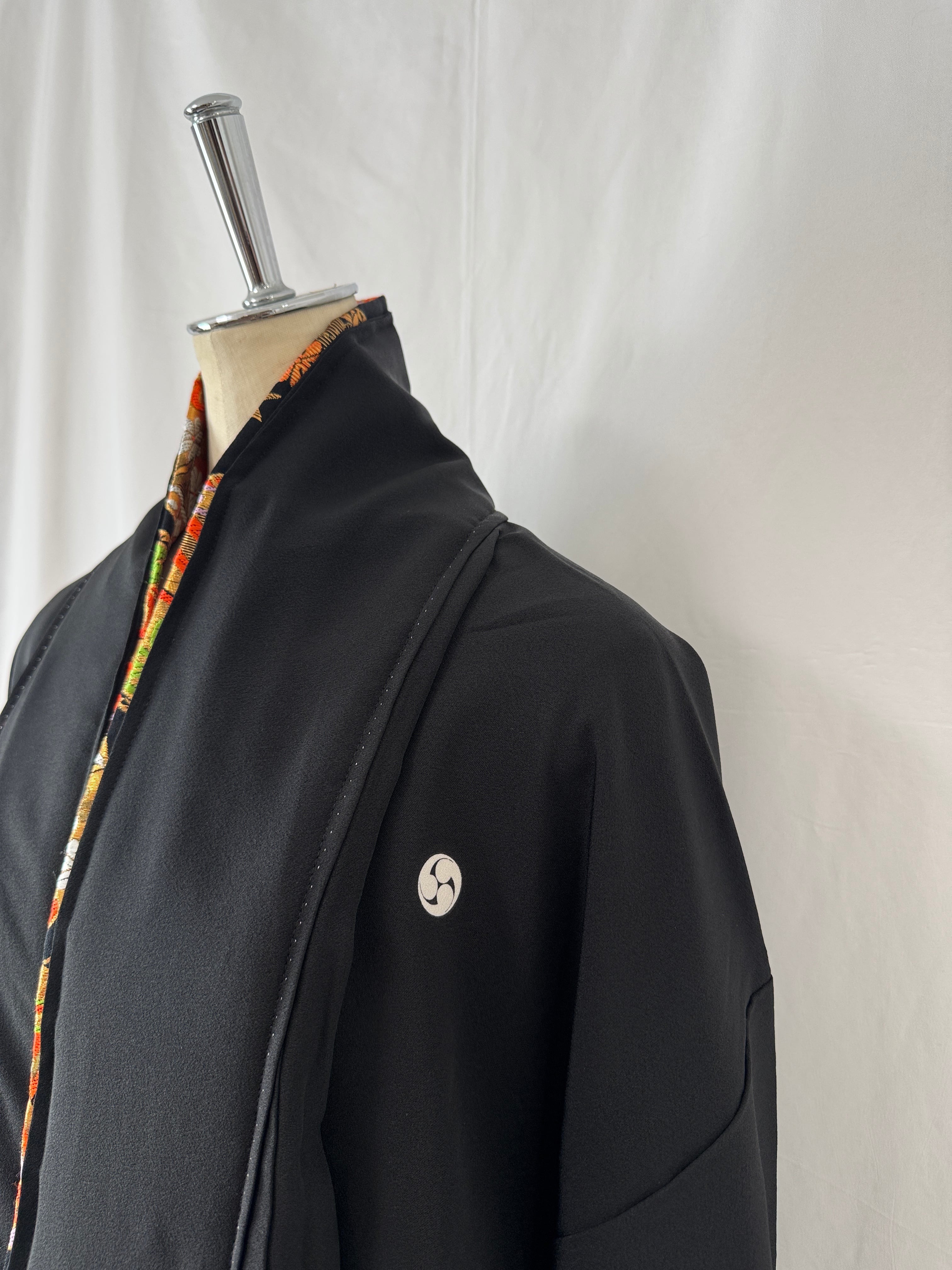 Additionally, the jacket's inner collar features an obi sash sewn to match the overall aesthetic, creating a subtle accent visible when worn.