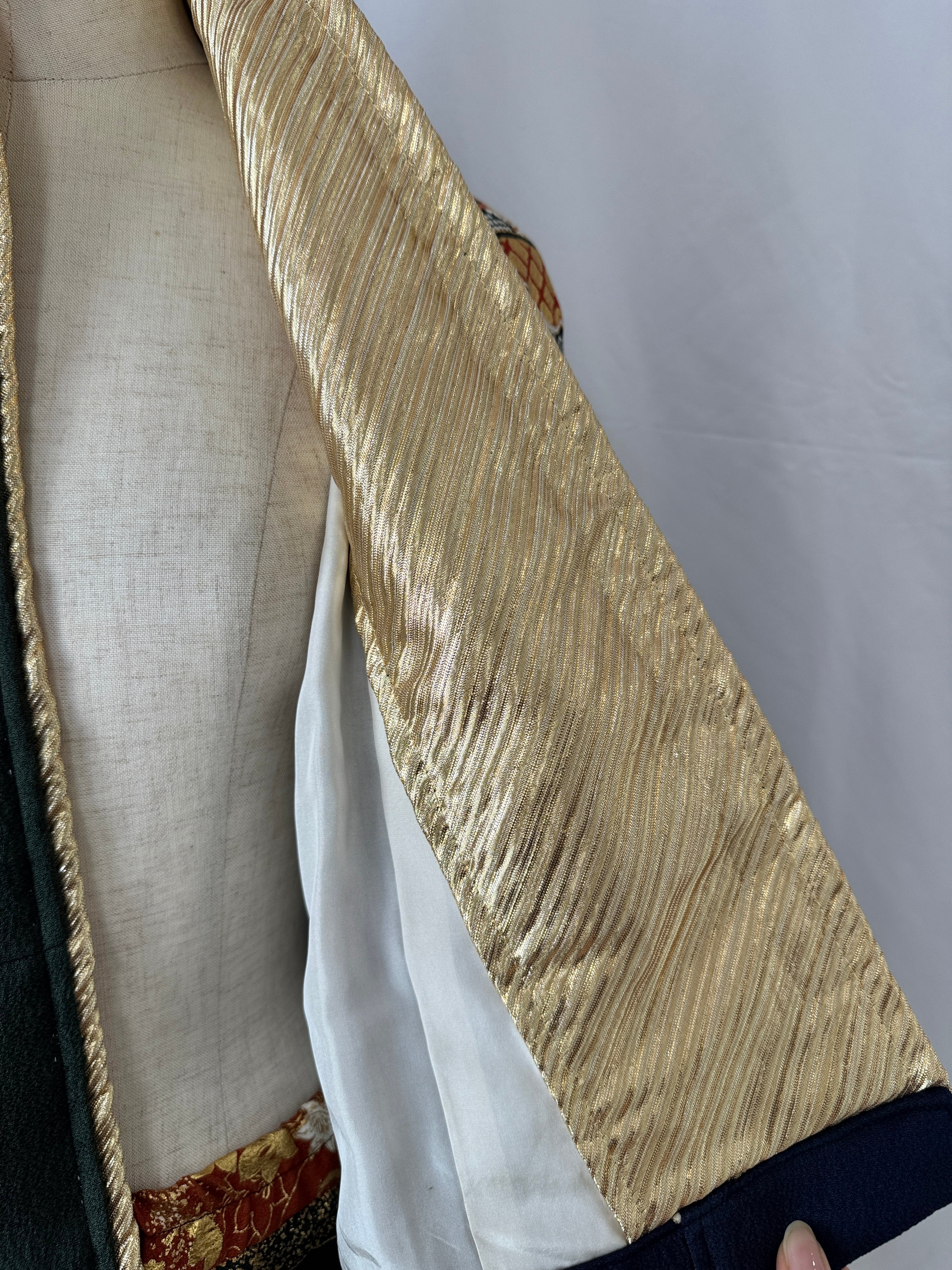 また、ジャケットの内側には、着物と相性の良い帯を張り合わせており、存在感のある仕上がりに。