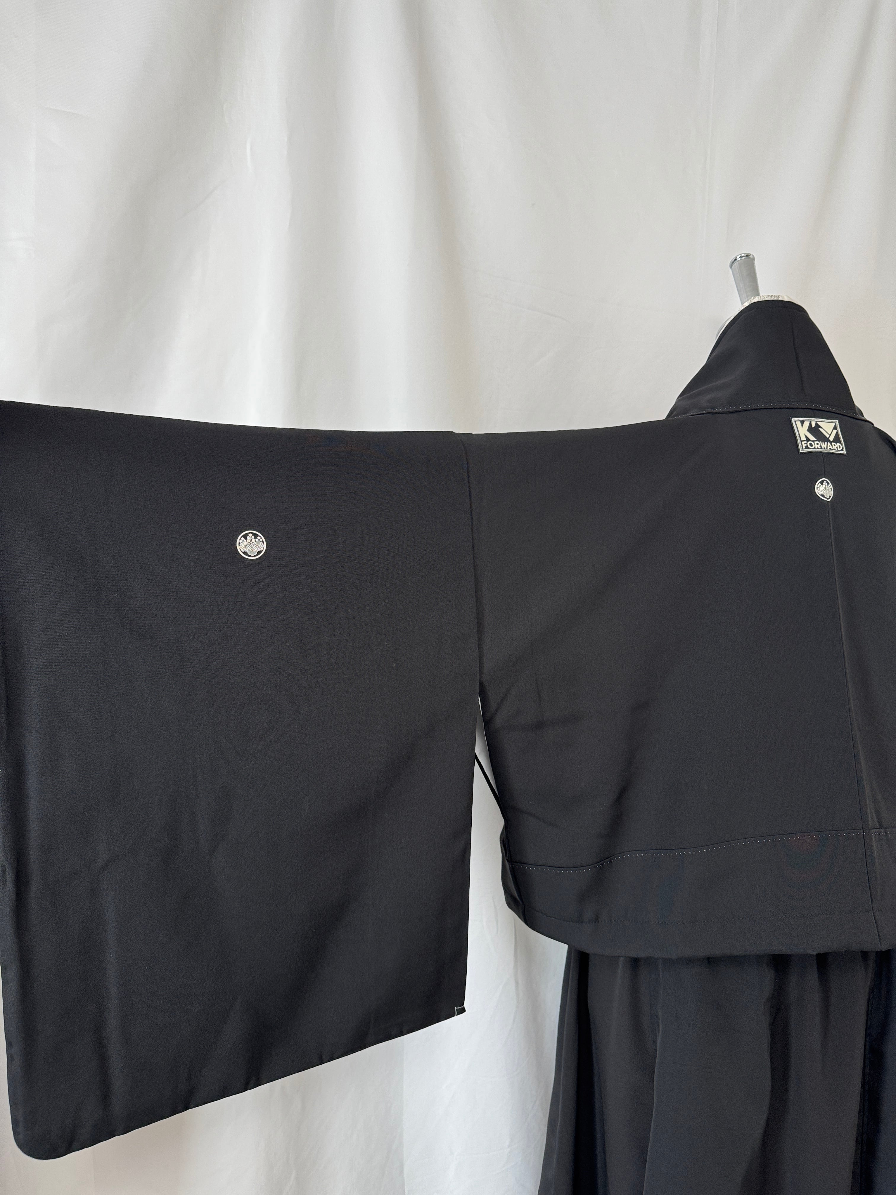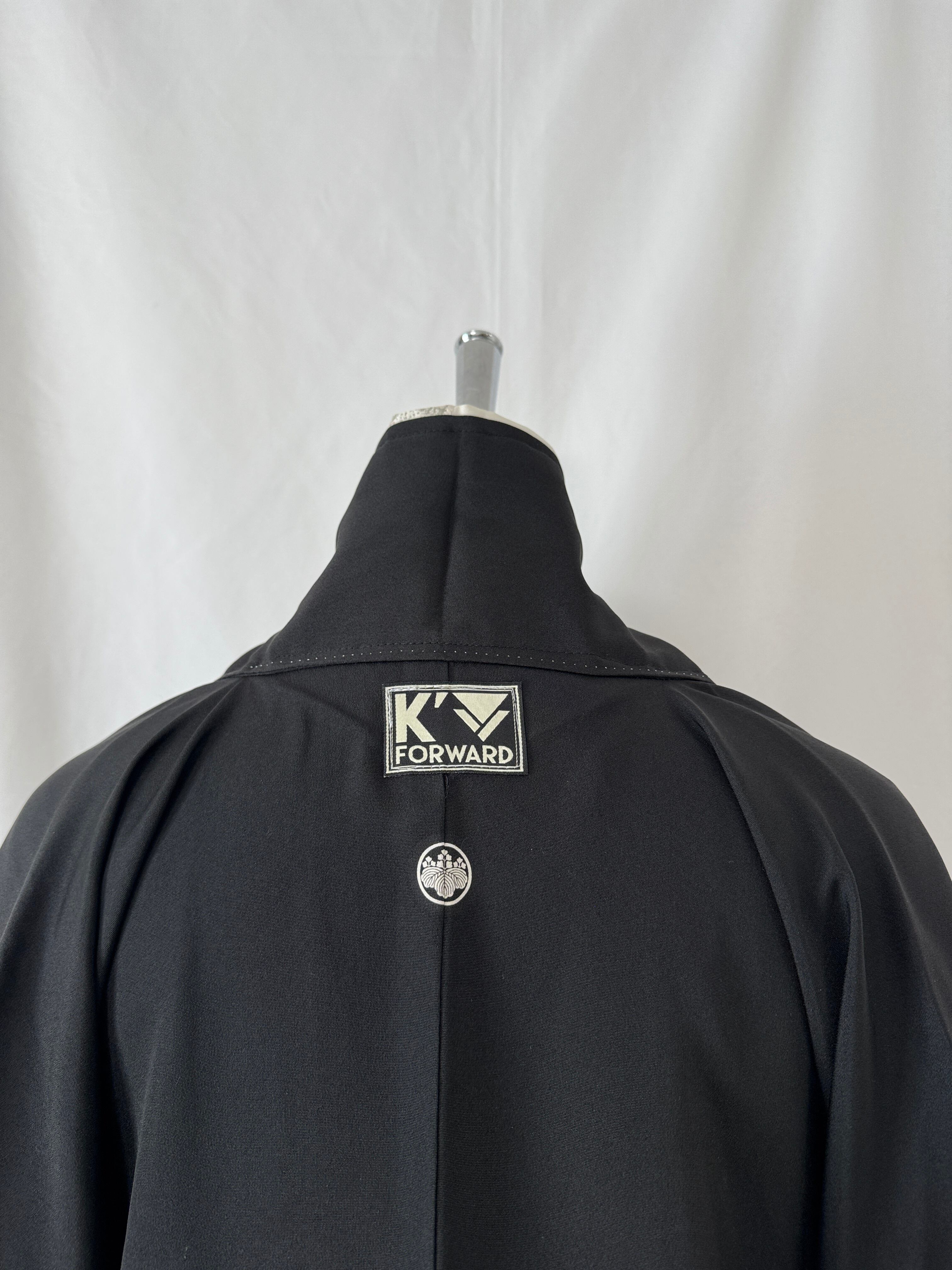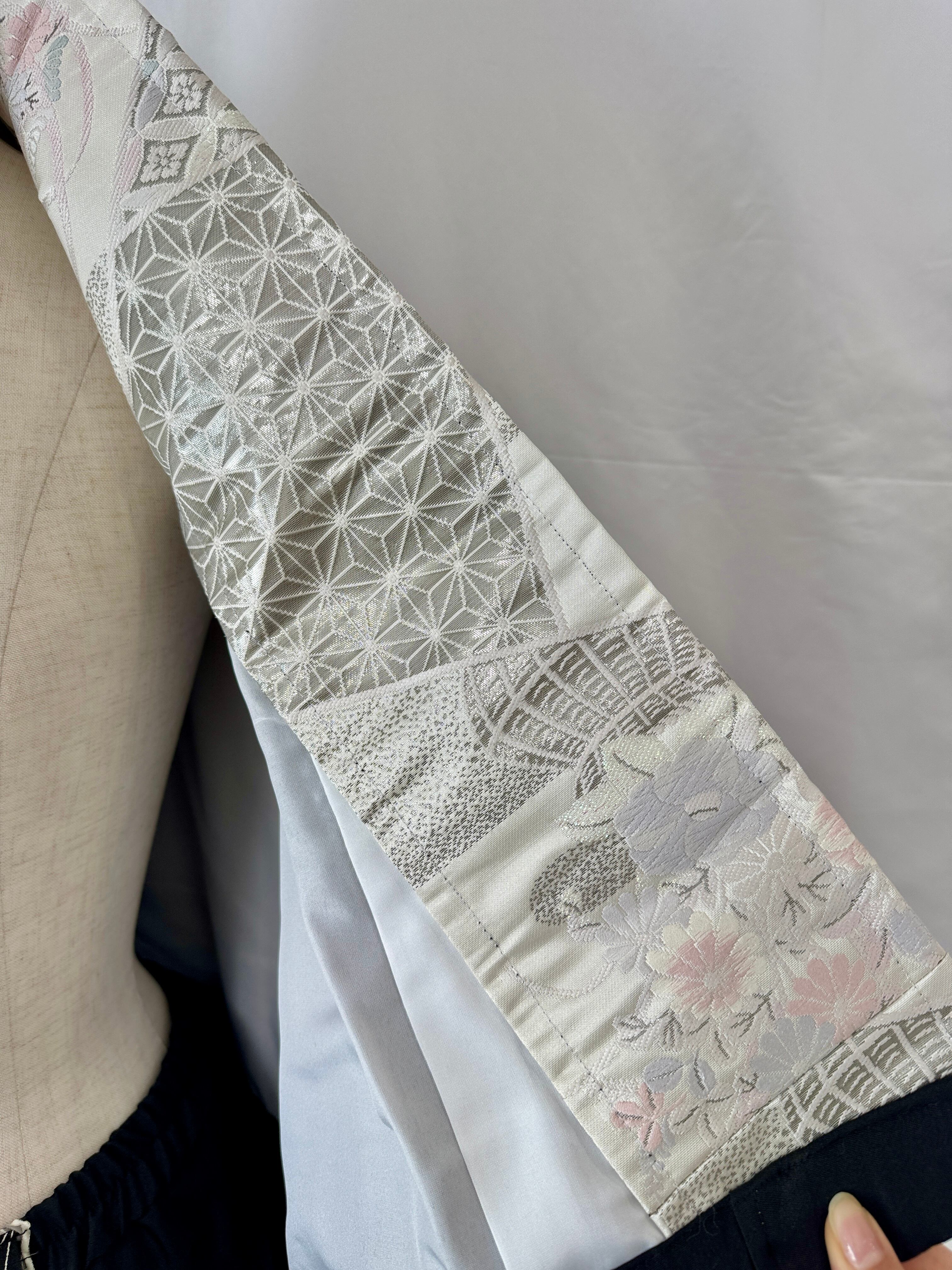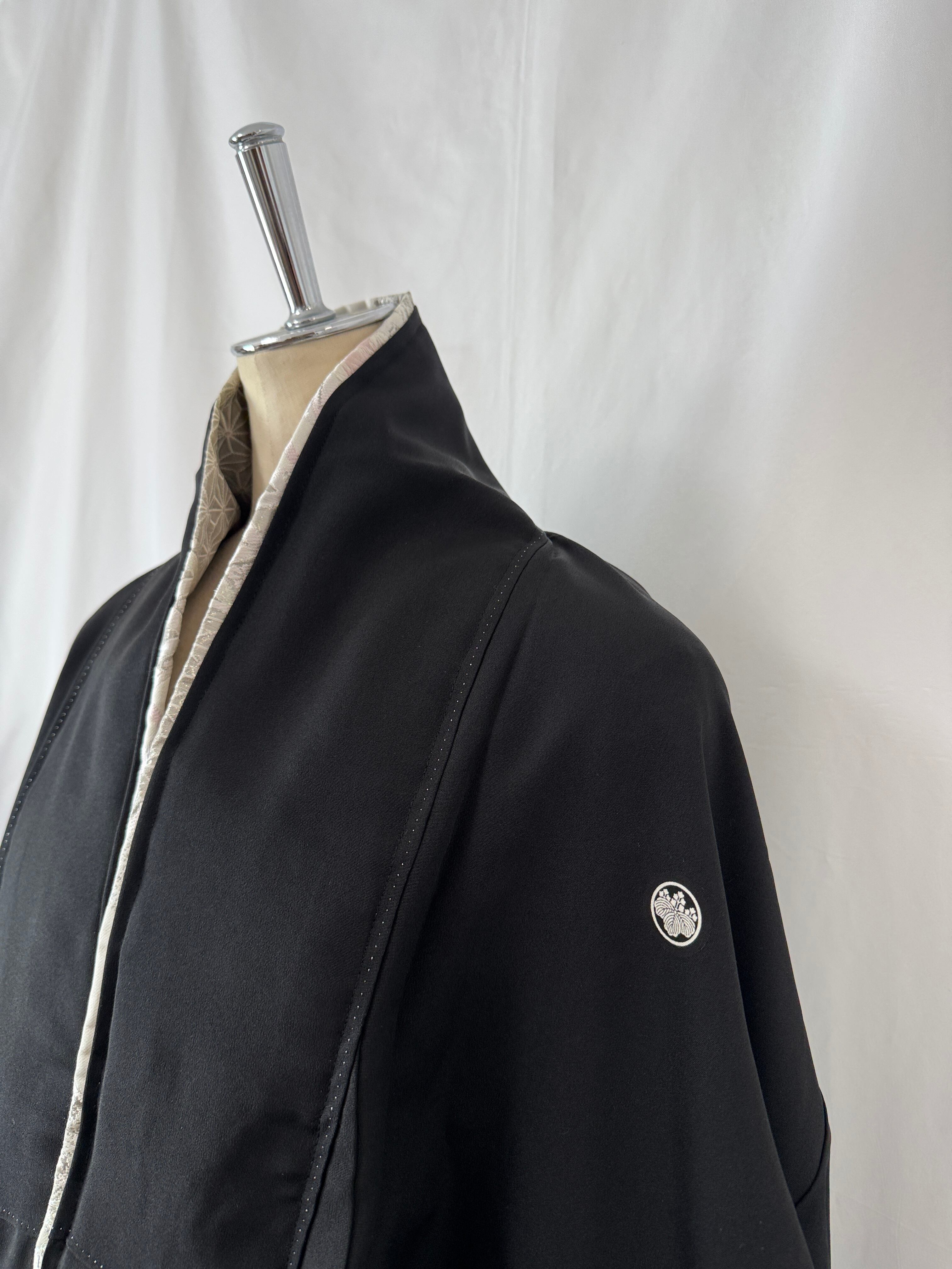 Additionally, the jacket's inner collar features an obi sash sewn to match the overall aesthetic, creating a subtle accent visible when worn.