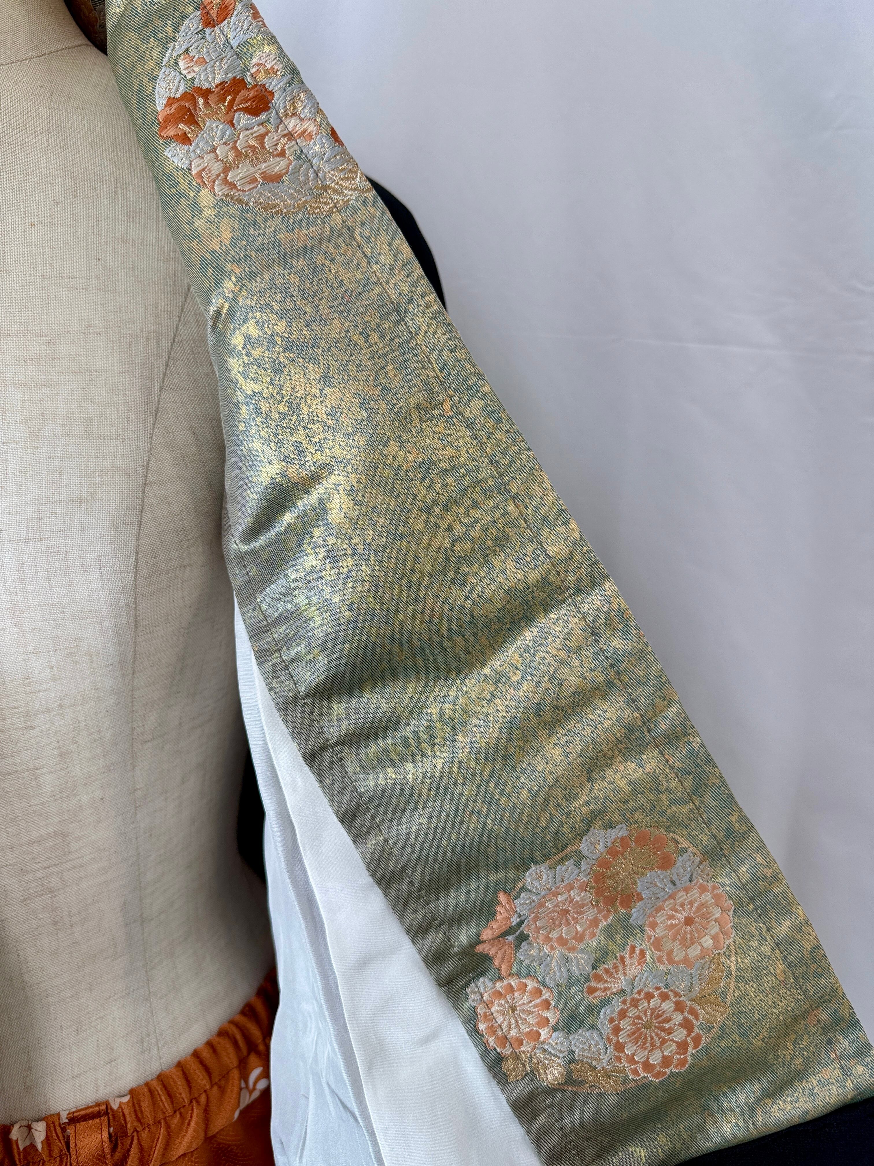 Both jackets feature an obi sash pattern on the collar lining, offering an elegant accent when the pattern peeks through upon wearing.