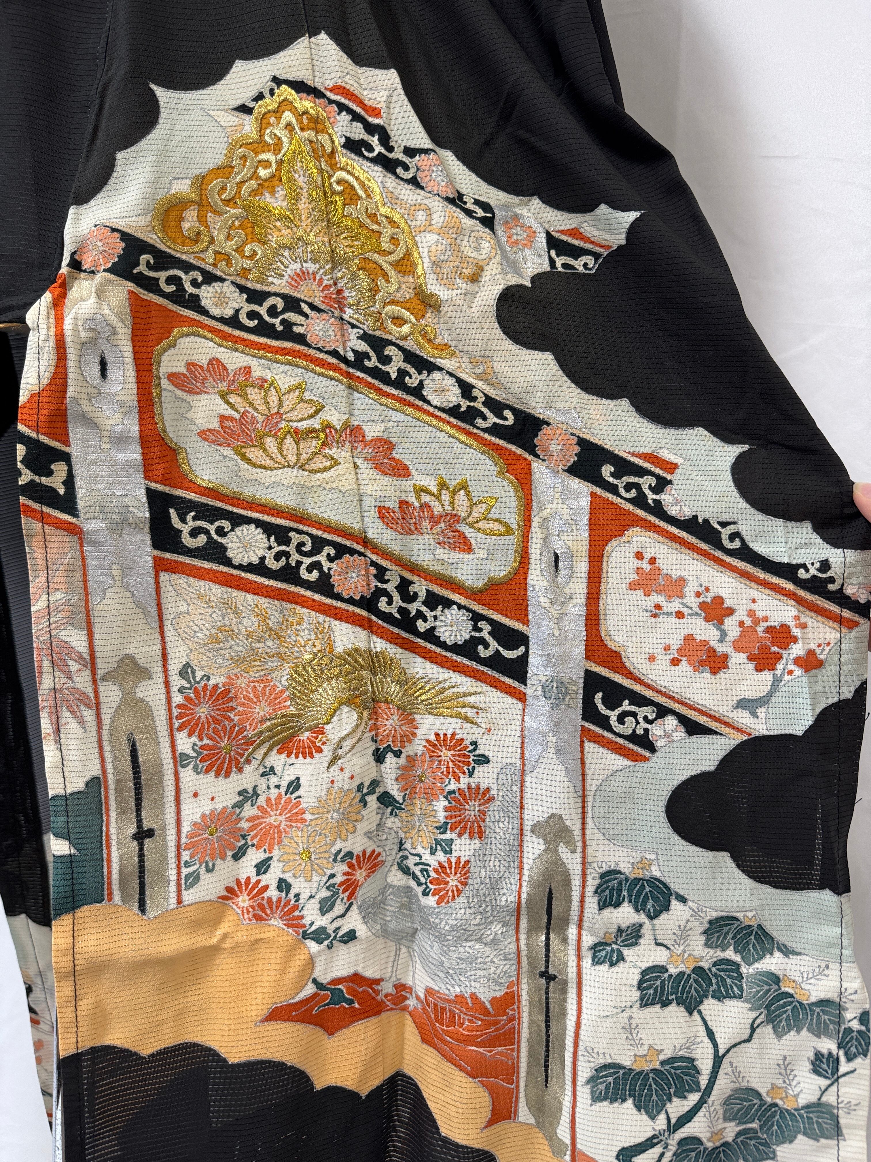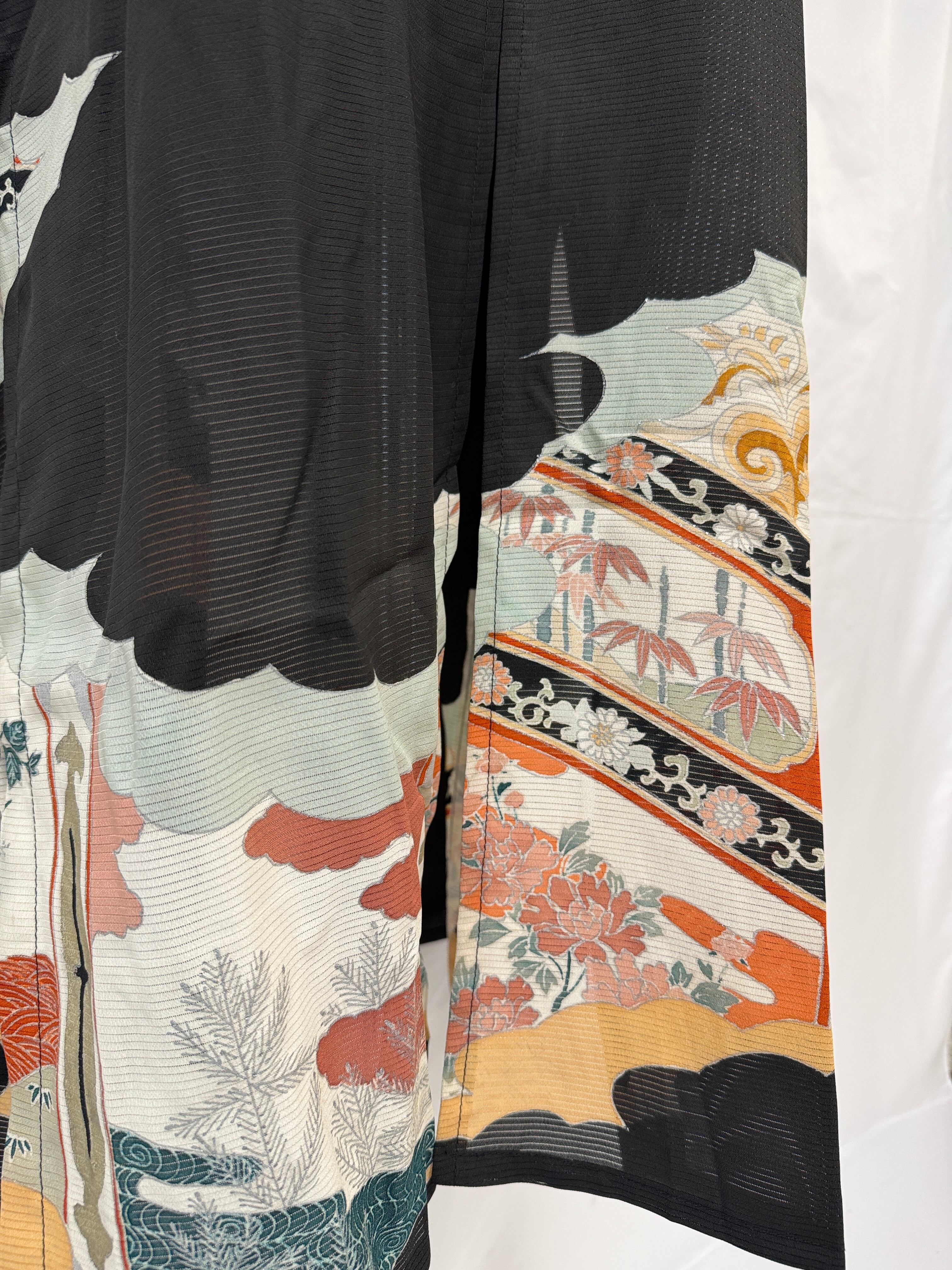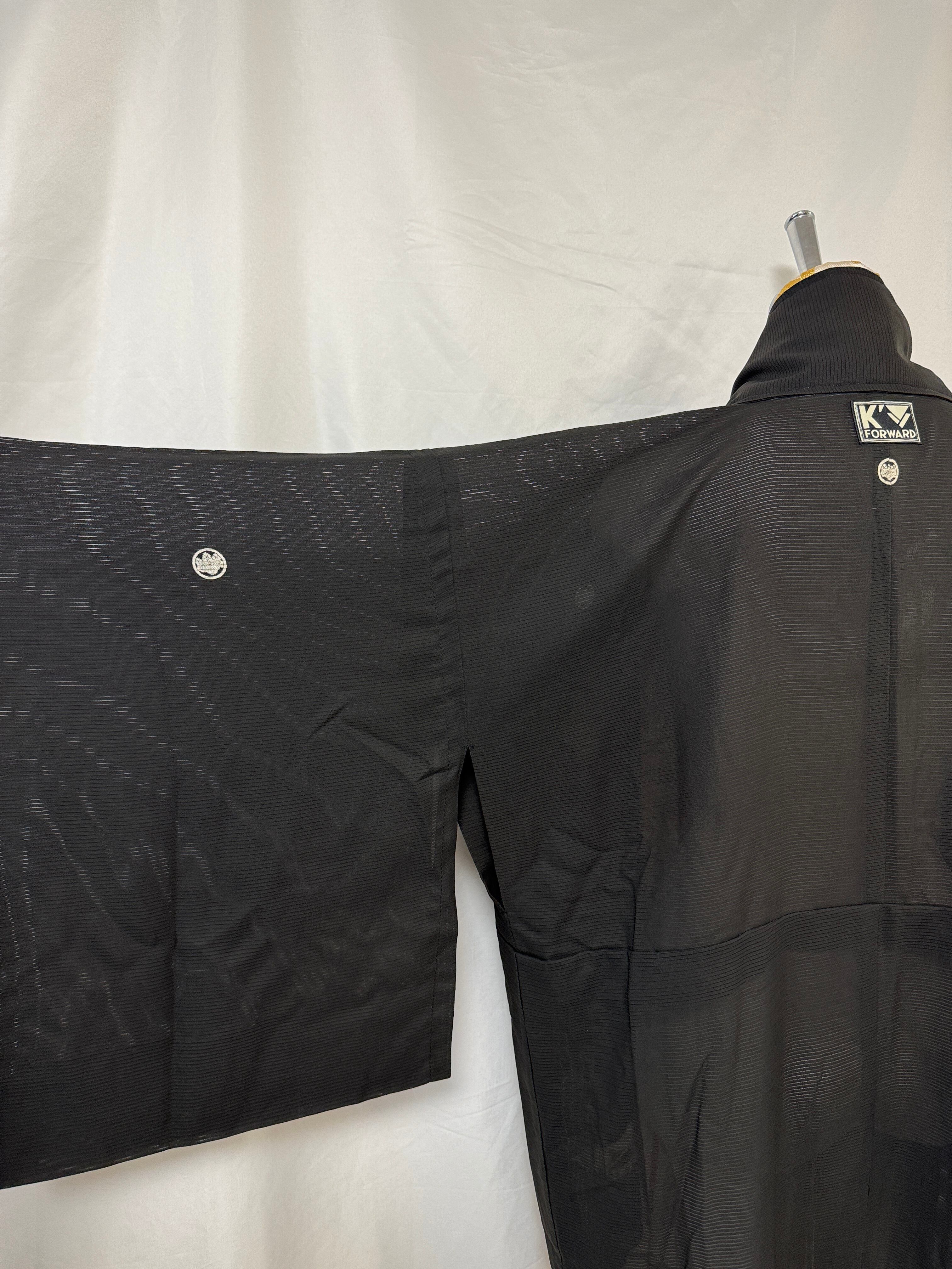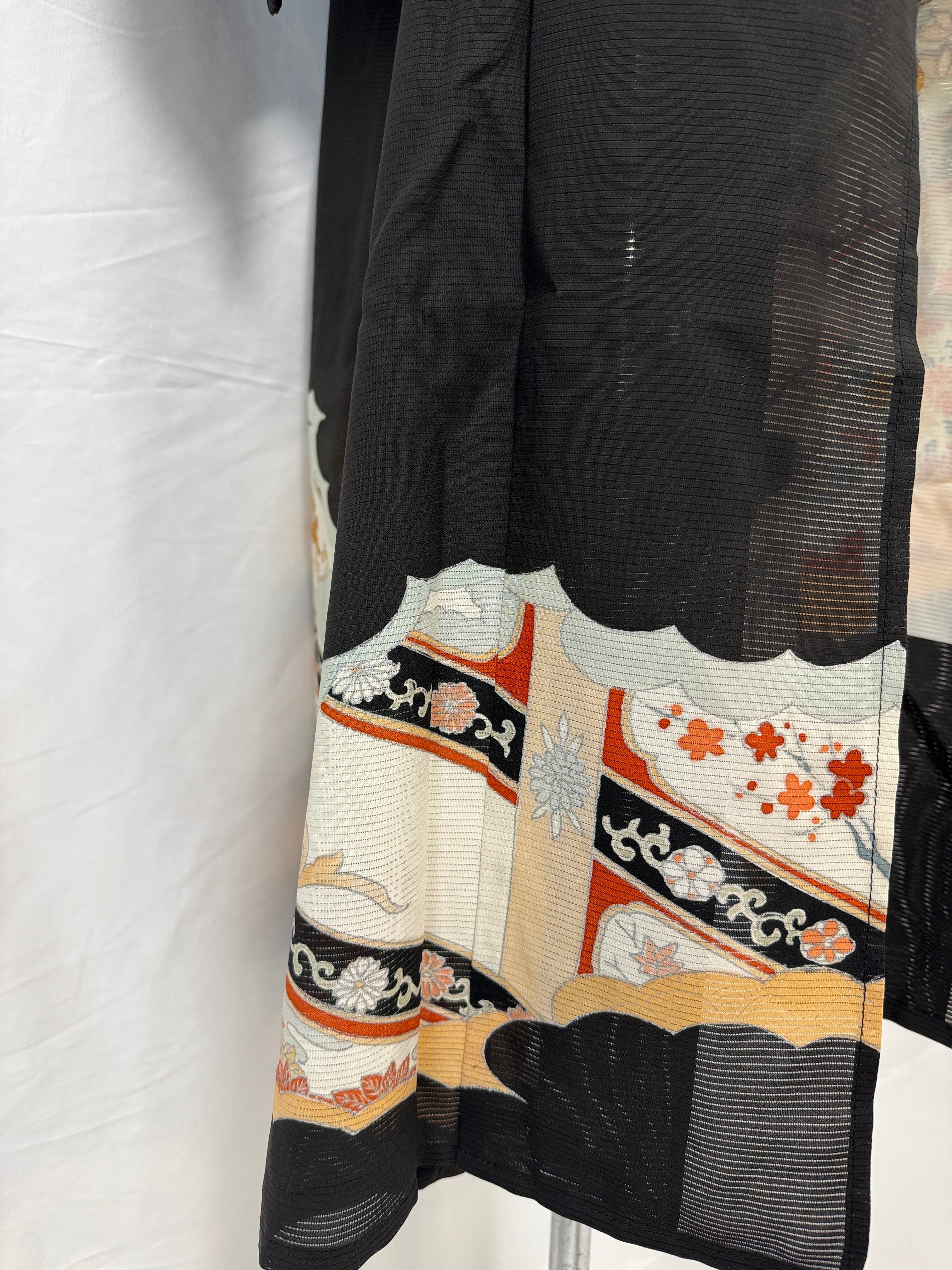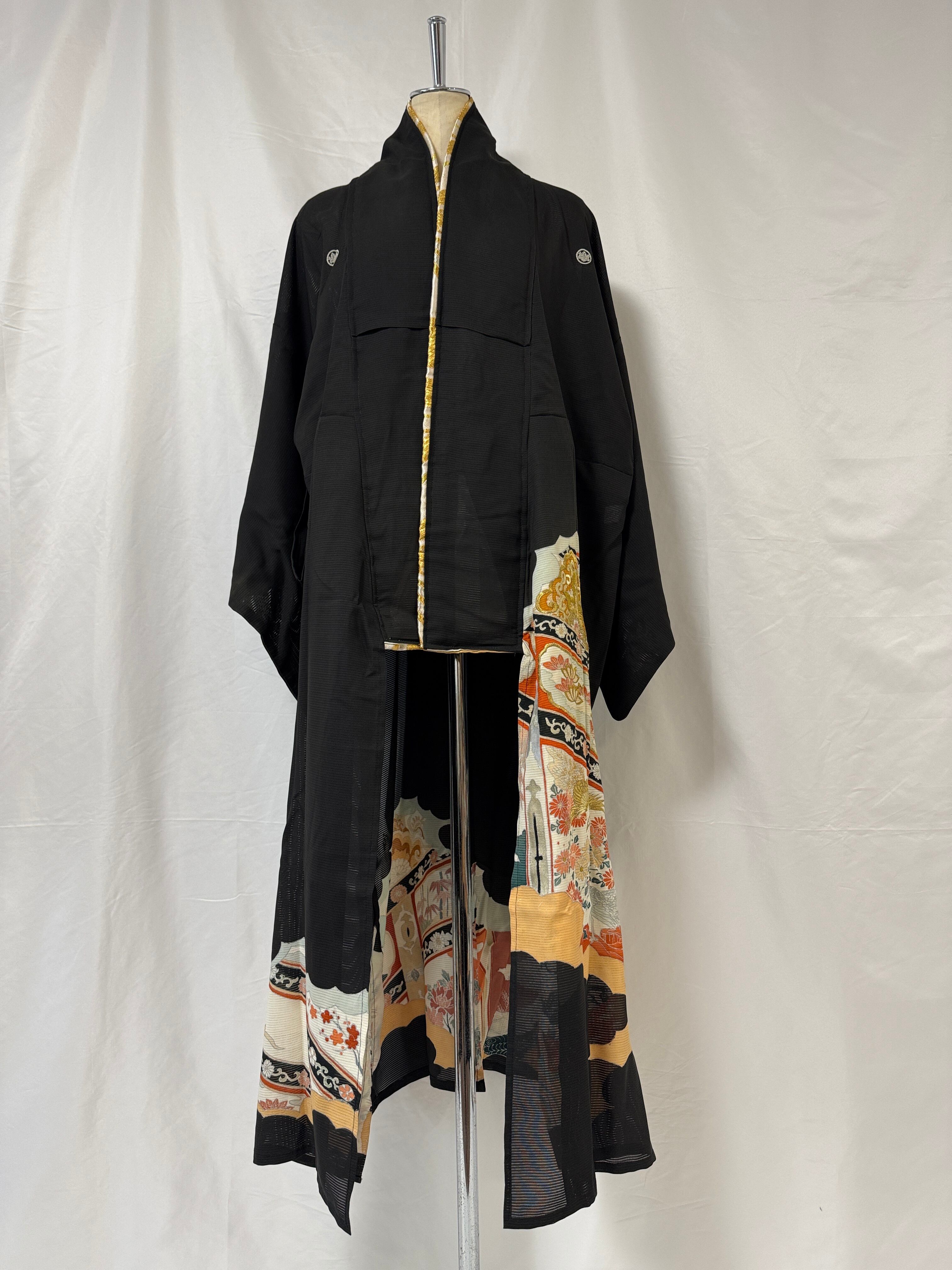 軽やかな透け感が美しい、夏用の黒留袖を贅沢に使用した一点物のロングコート。