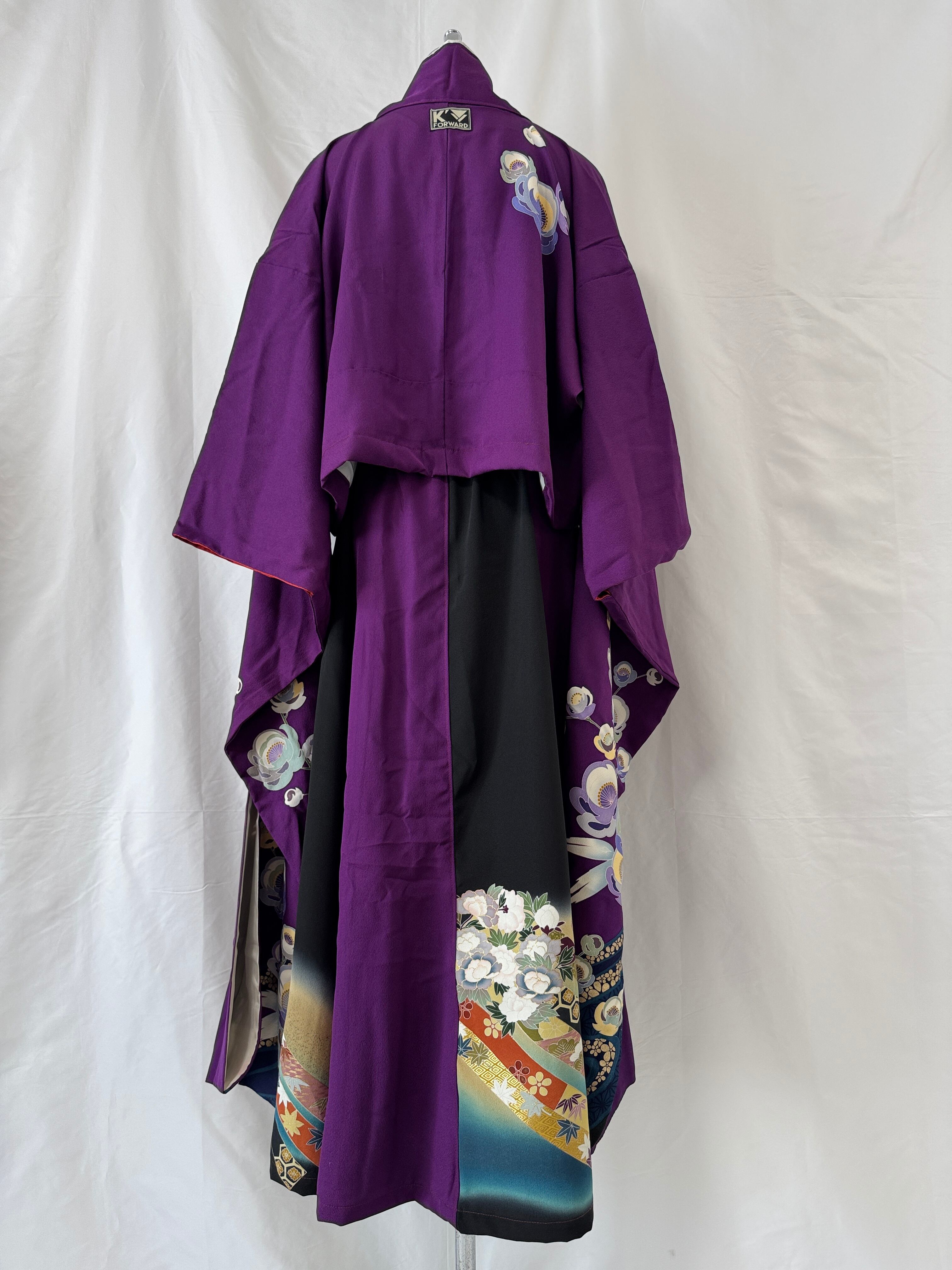 A one-of-a-kind two-piece set from K'FORWARD's premium line, luxuriously blending the formal ‘furisode’ and ‘kurotomesode’ and reconstructing them as contemporary attire.