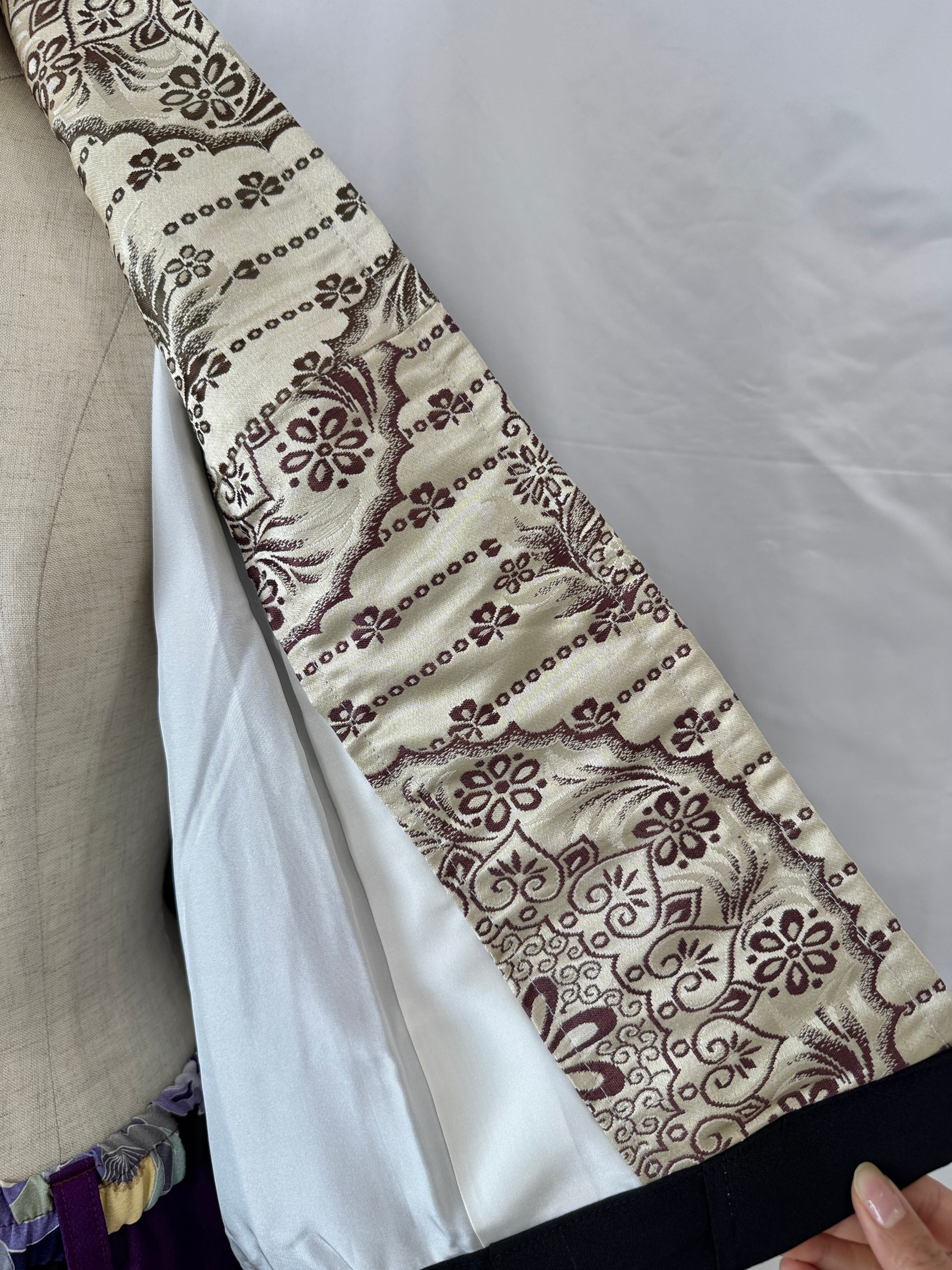 また、ジャケットの内側には、着物と相性の良い帯を張り合わせており、存在感のある仕上がりに。