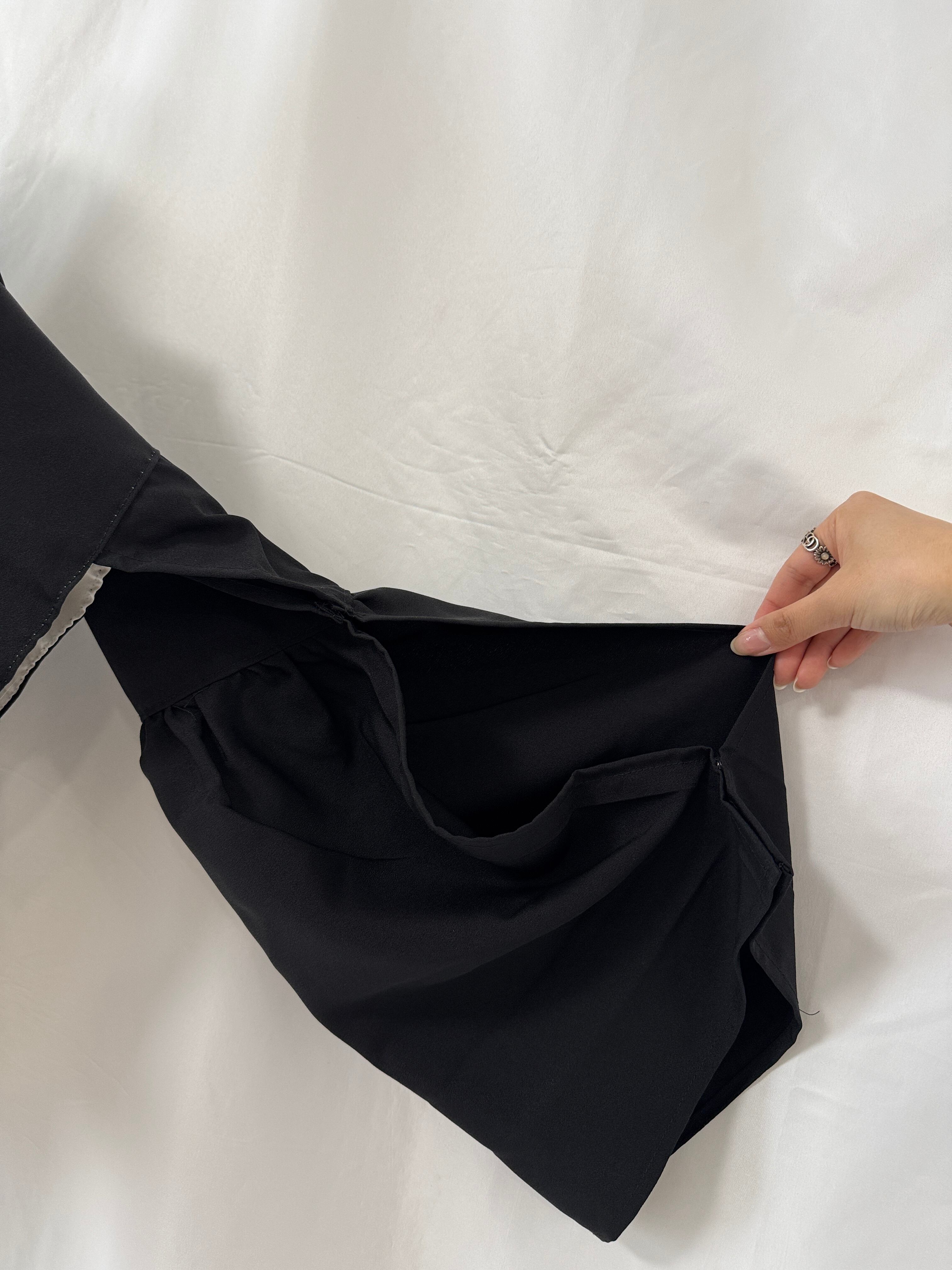 Two buttons are placed at the cuffs, allowing you to enjoy different silhouettes depending on how you fasten them.