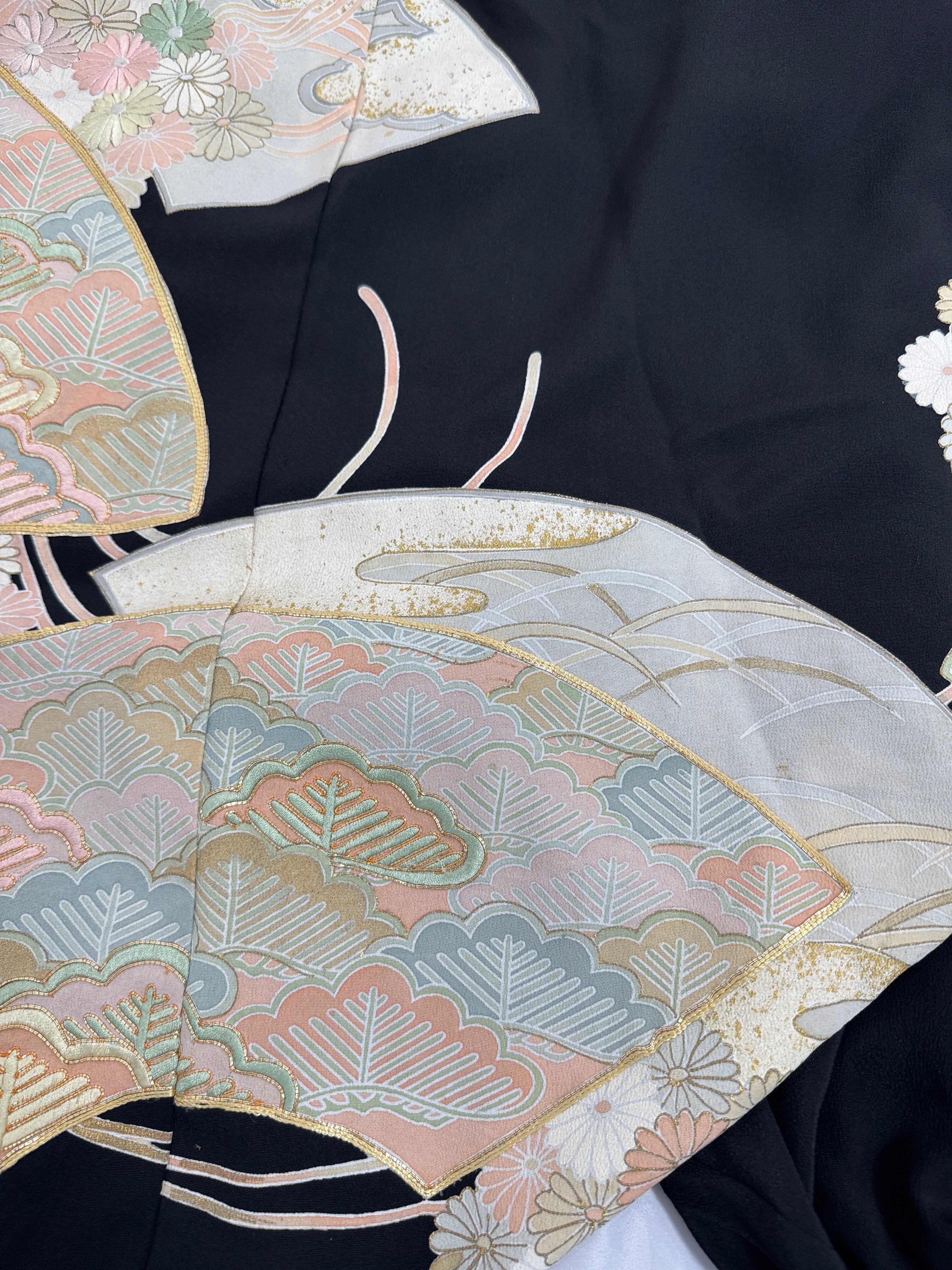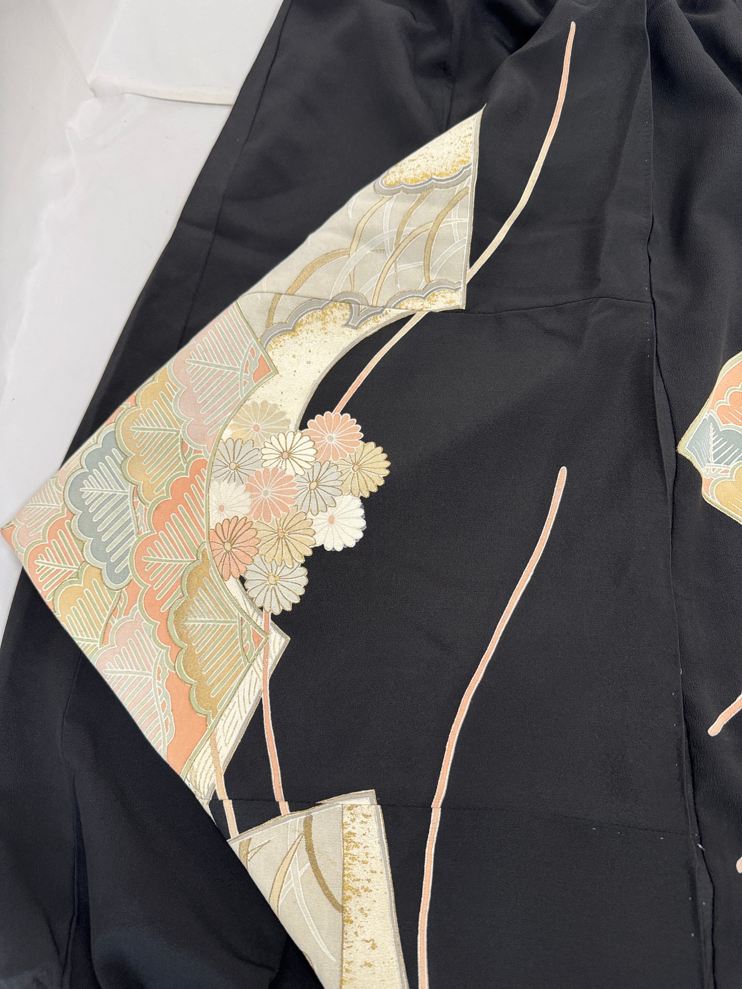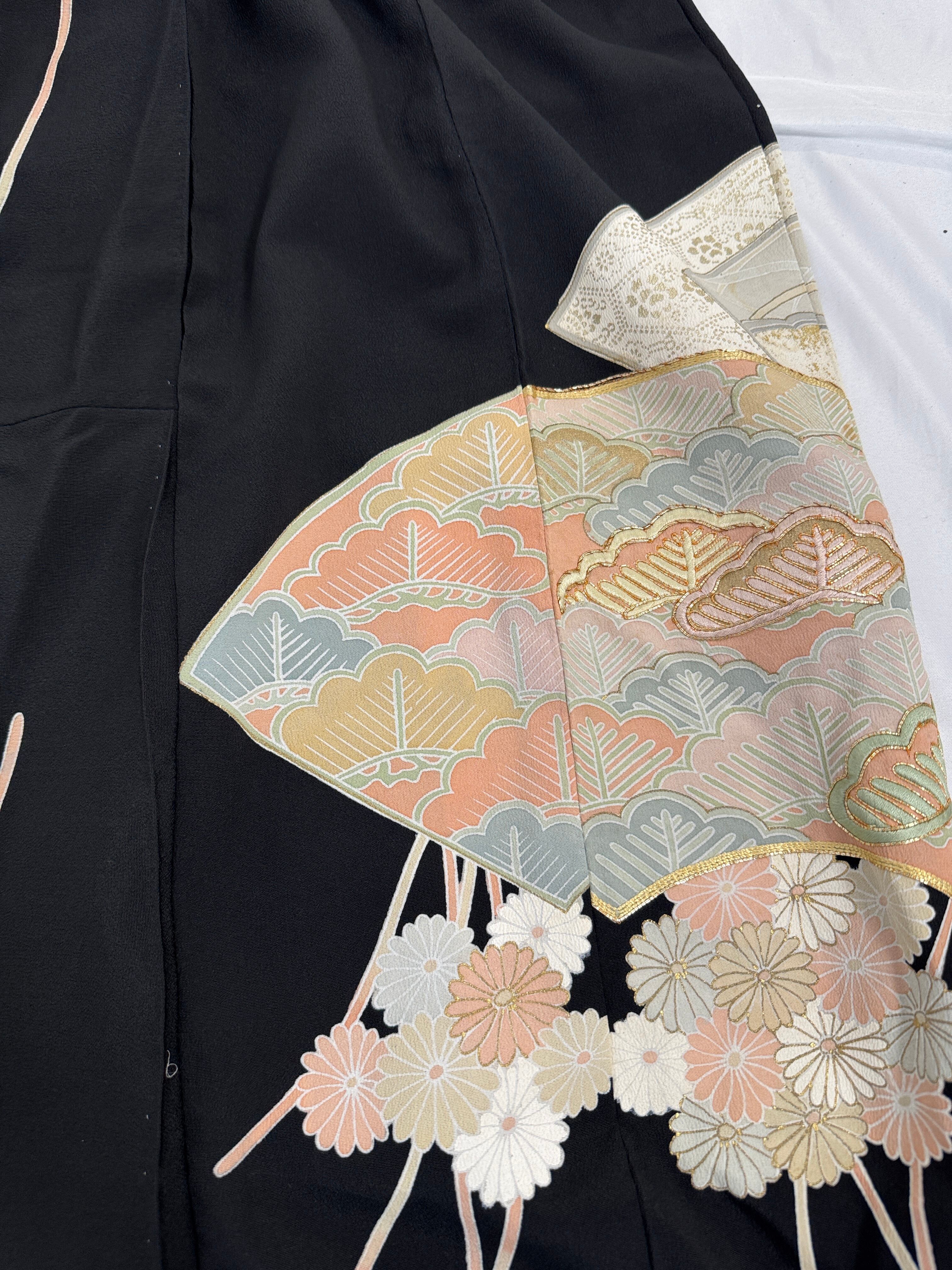 格式ある黒留袖を贅沢に使用し、ゆったりとしたサルエルシルエットのパンツにリメイク。
