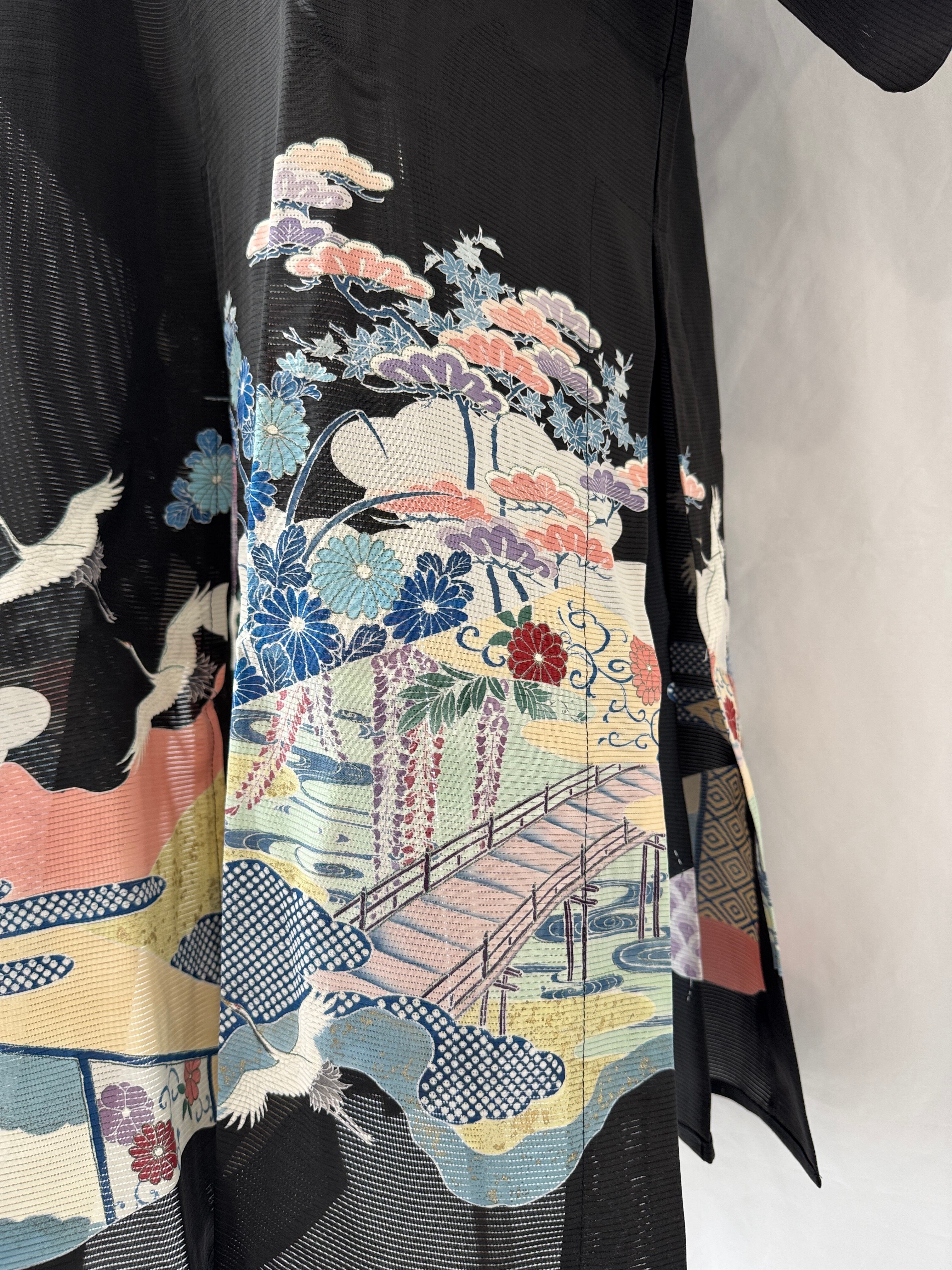 The sheer fabric offers the cool, airy texture unique to summer kimonos.