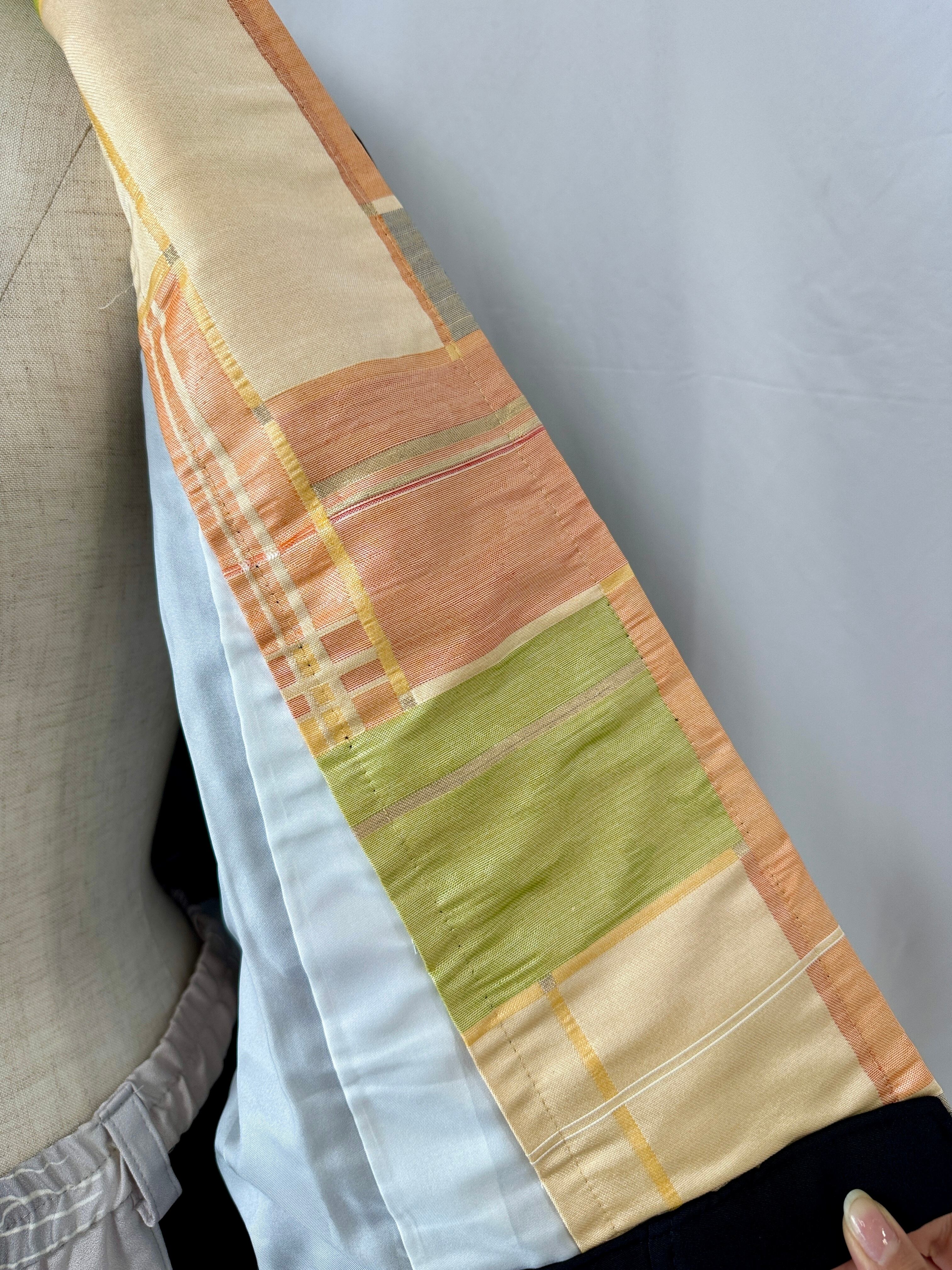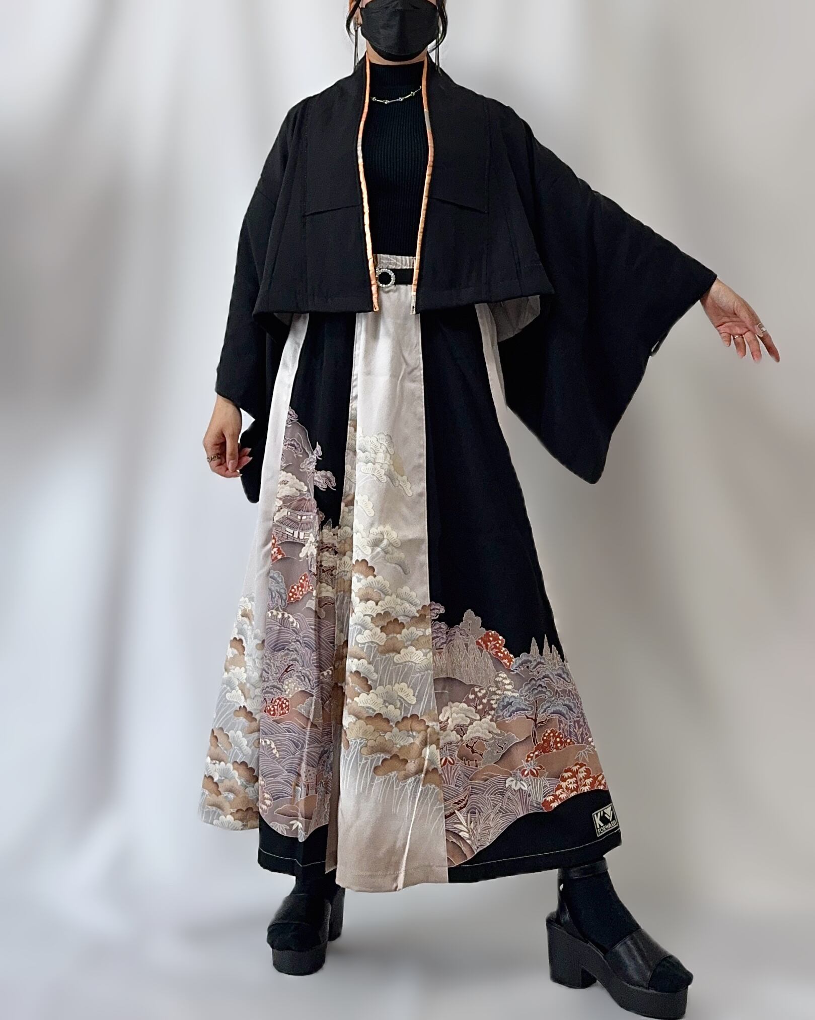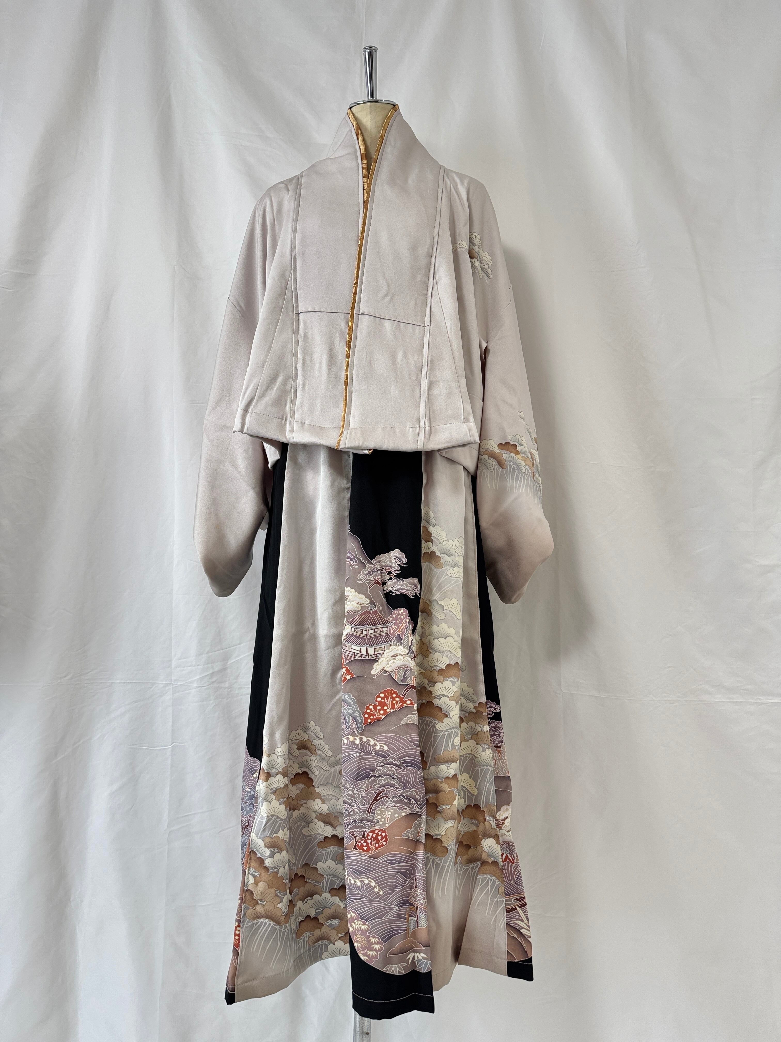 ヴィンテージの訪問着と留袖を用いて仕立てた、K´FORWARDの一点物セットアップ。