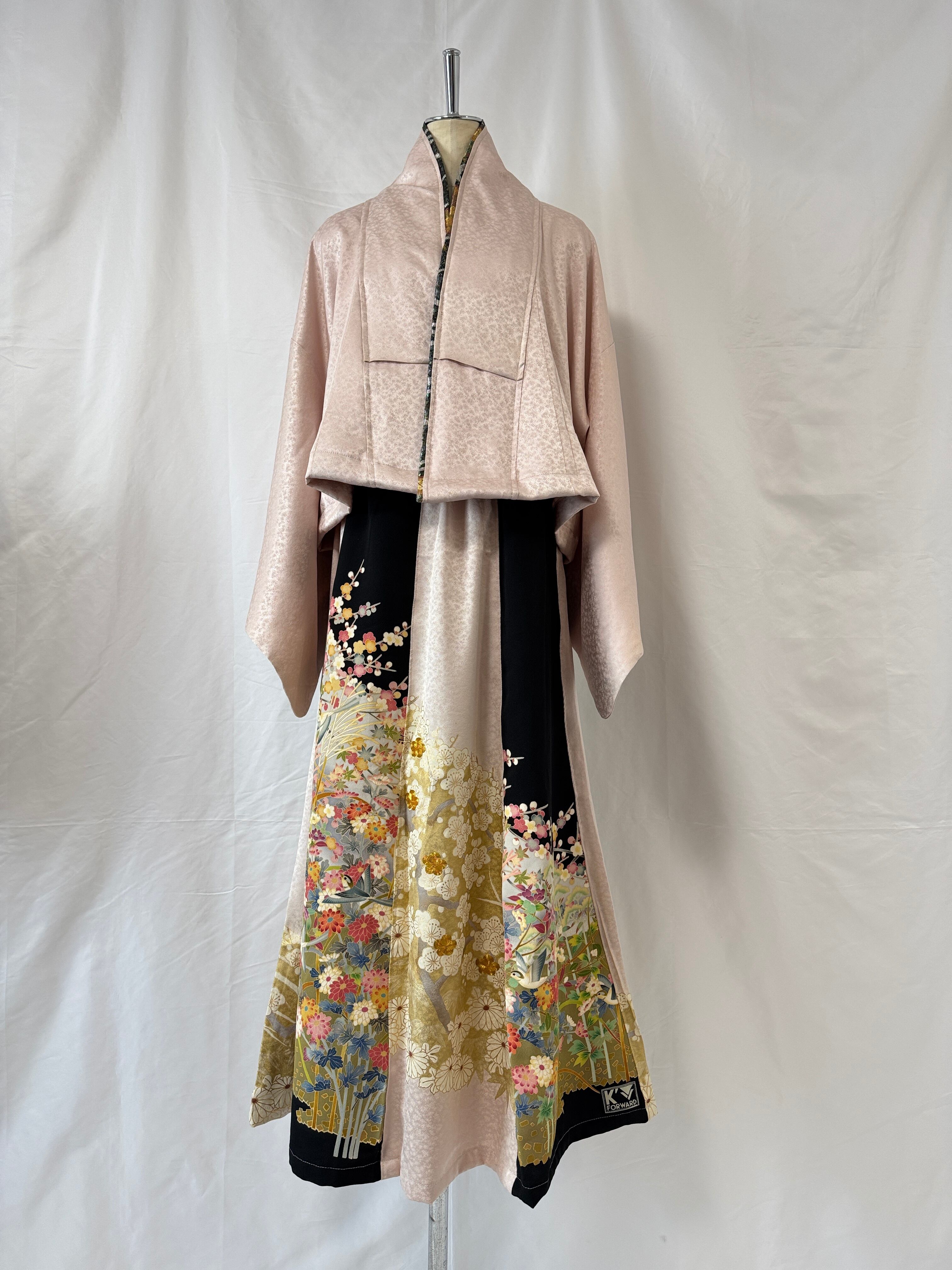This one-of-a-kind piece is the result of K’FORWARD’s unique sustainable manufacturing process, which makes full use of every part of the kimono.