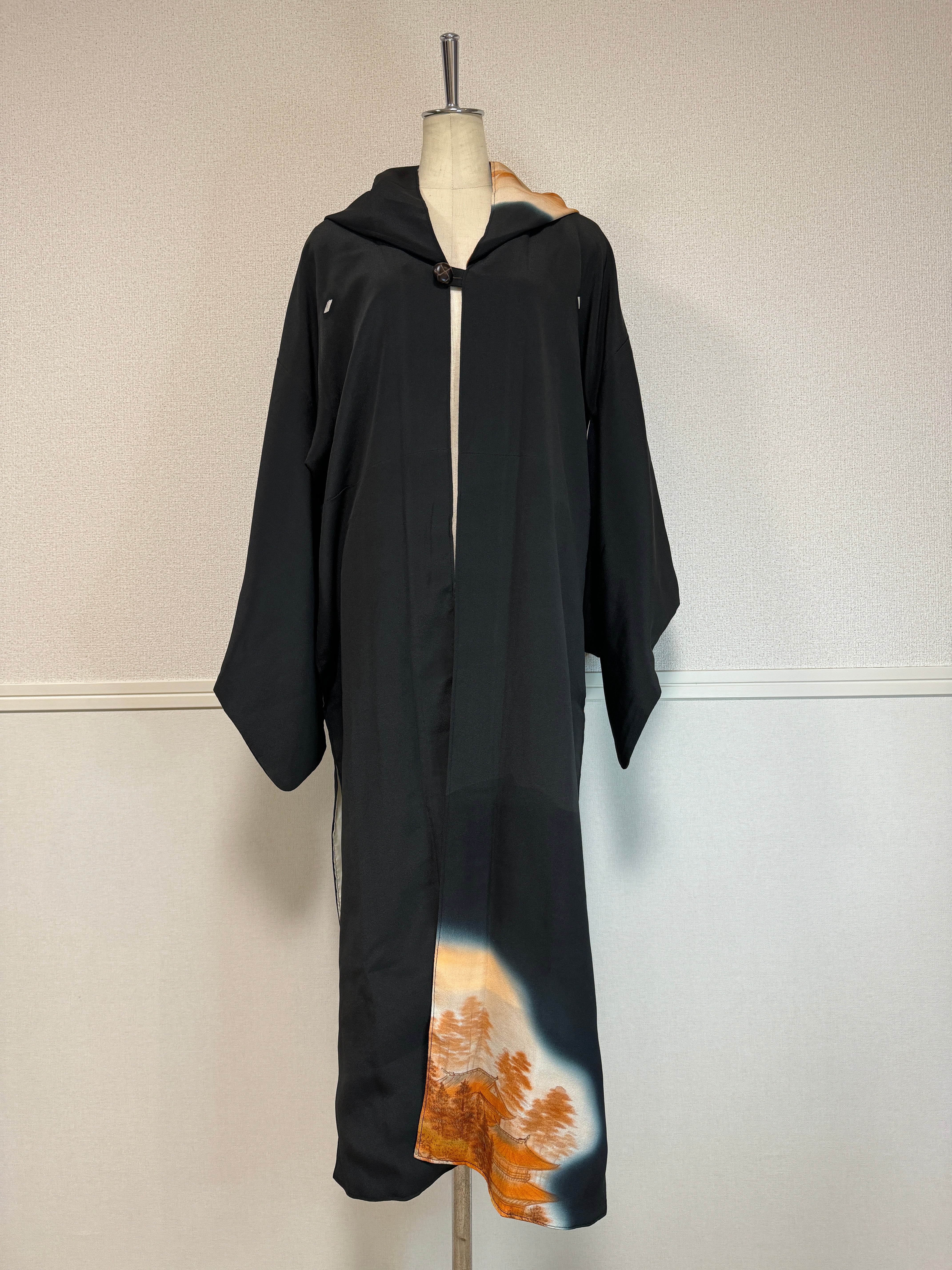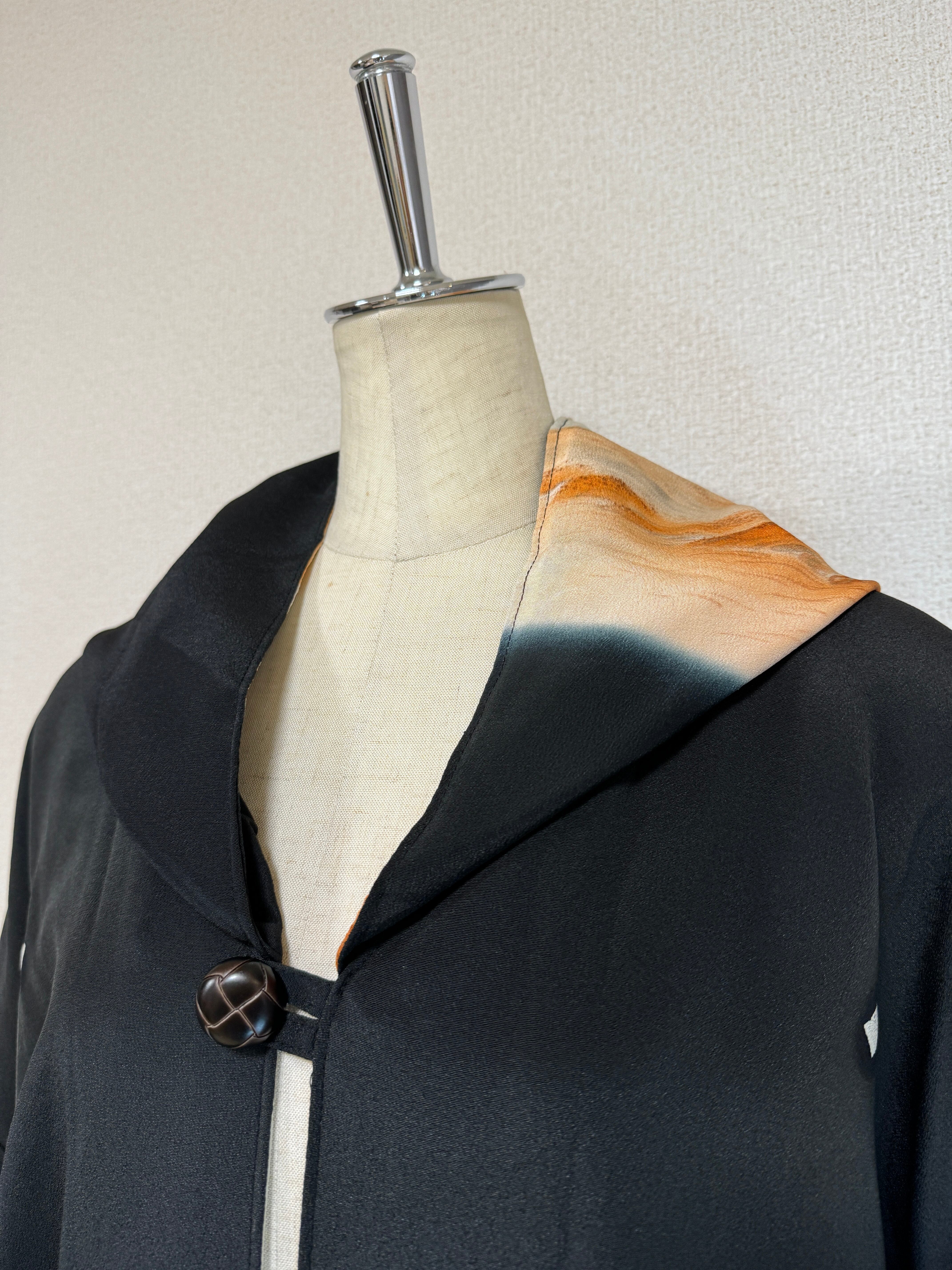 アンティーク着物をフードロングコートに再生。