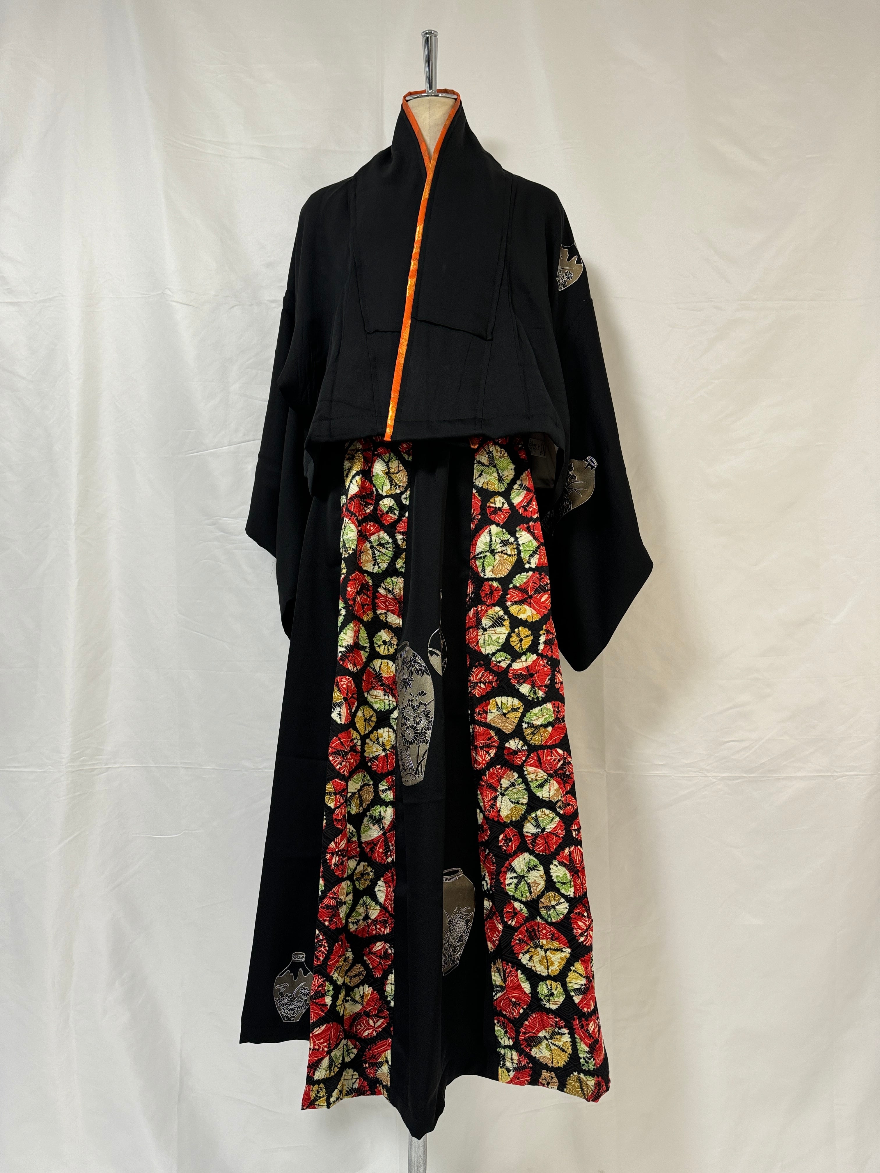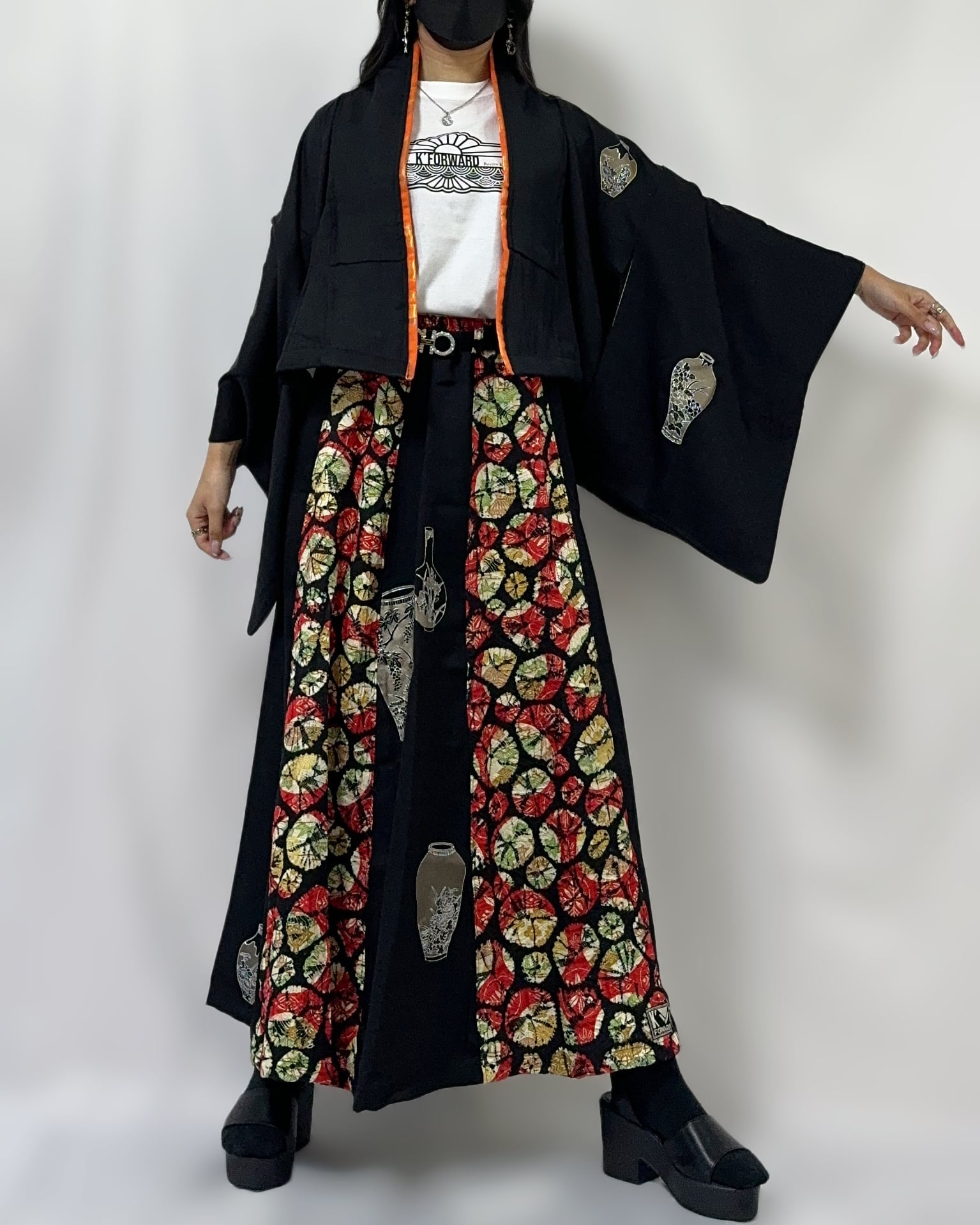 2着の着物を組み合わせて、双方の良さを活かした素敵なお洋服です。